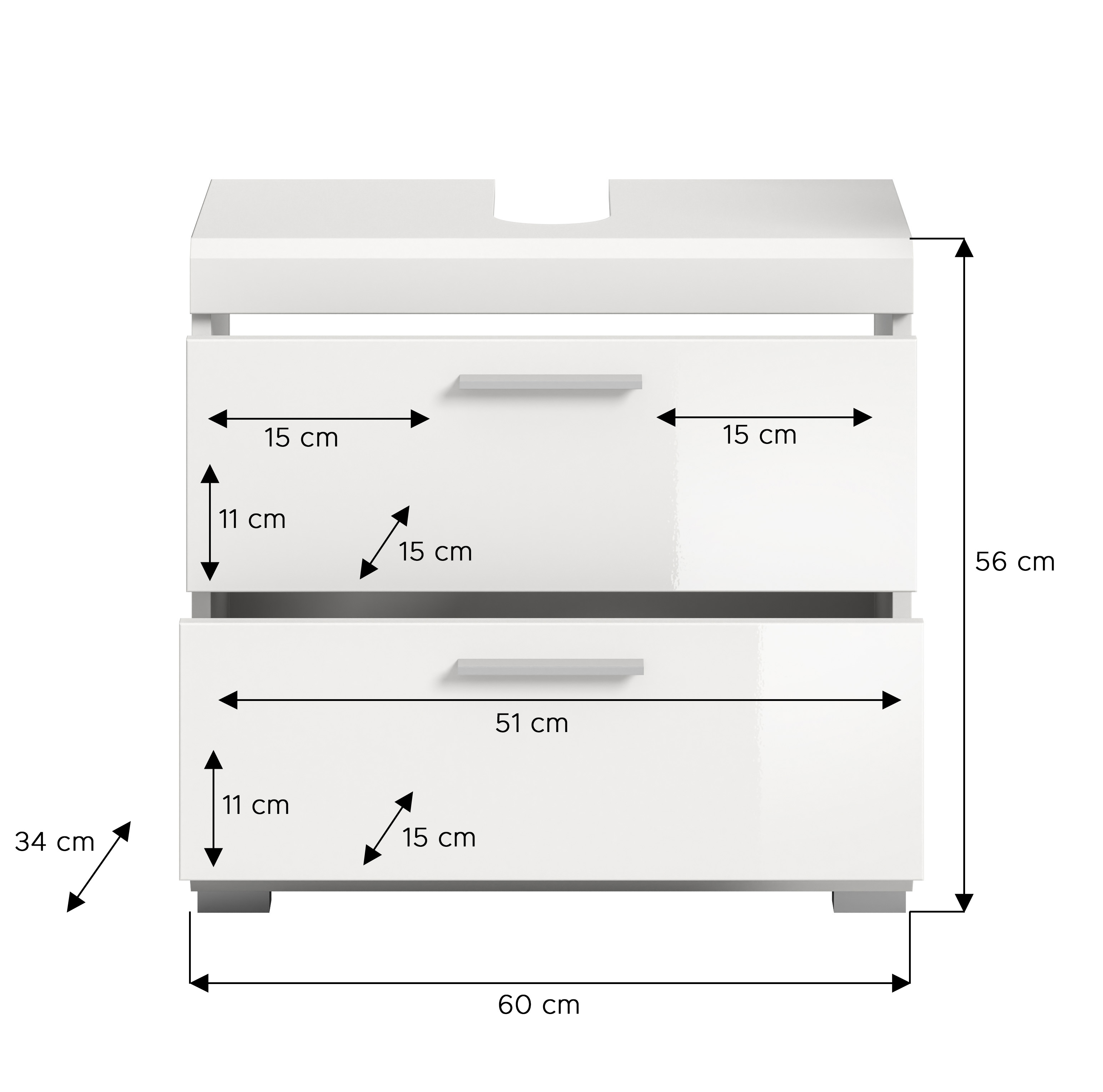 - Design/Stil: Schlichter Waschbeckenunterschrank in weiß Nachbildung und weißem Hochglanz tiefzieh, der sich nahtlos in verschiedene Badezimmer- und Hauswirtschaftsräume einfügt und ein modernes und ordentliches Erscheinungsbild bietet.