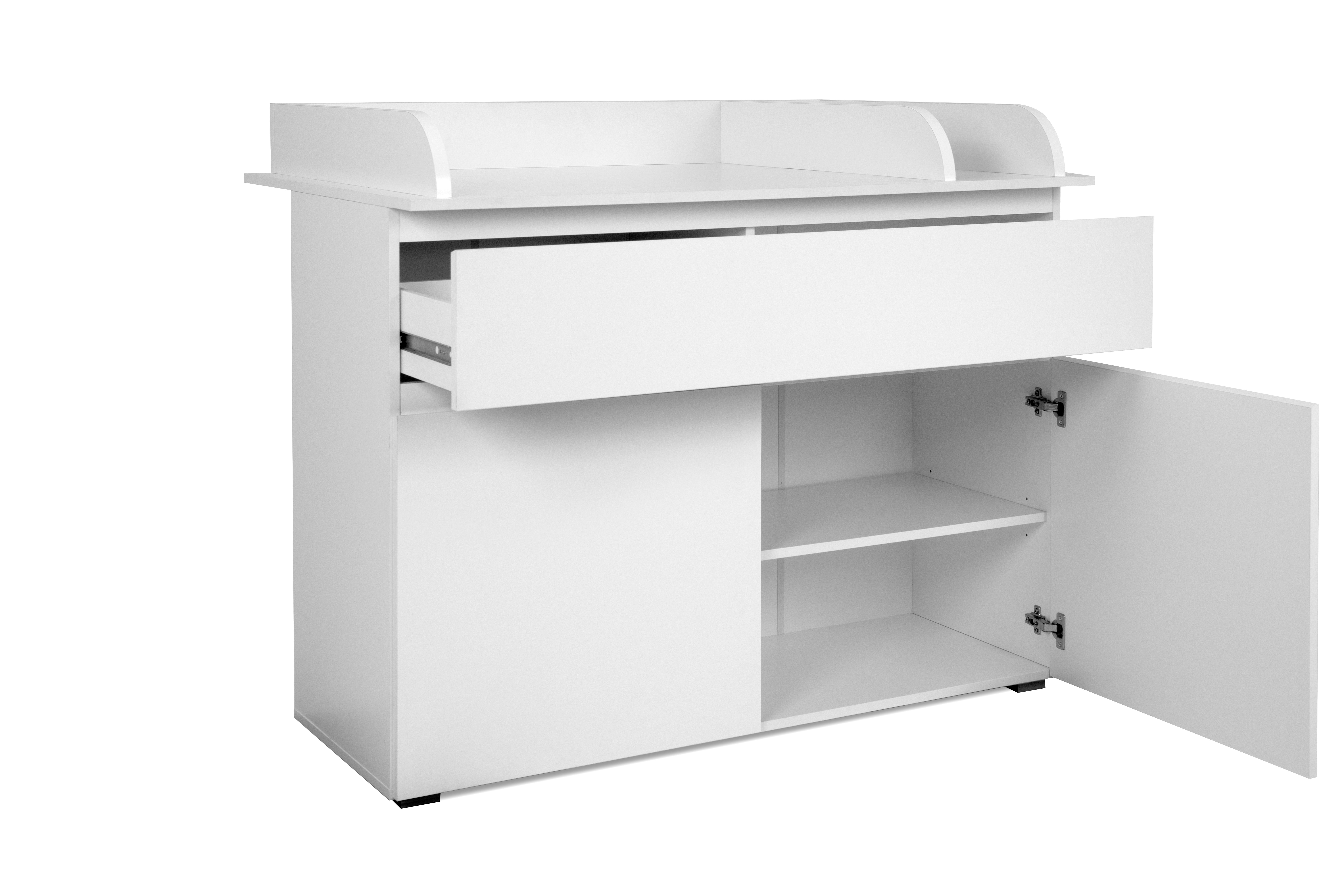 | Ausstattung Kommoden Phono Büro Regal: | Schublade(n), Türe(n), inkl. Wickelaufsatz | ||