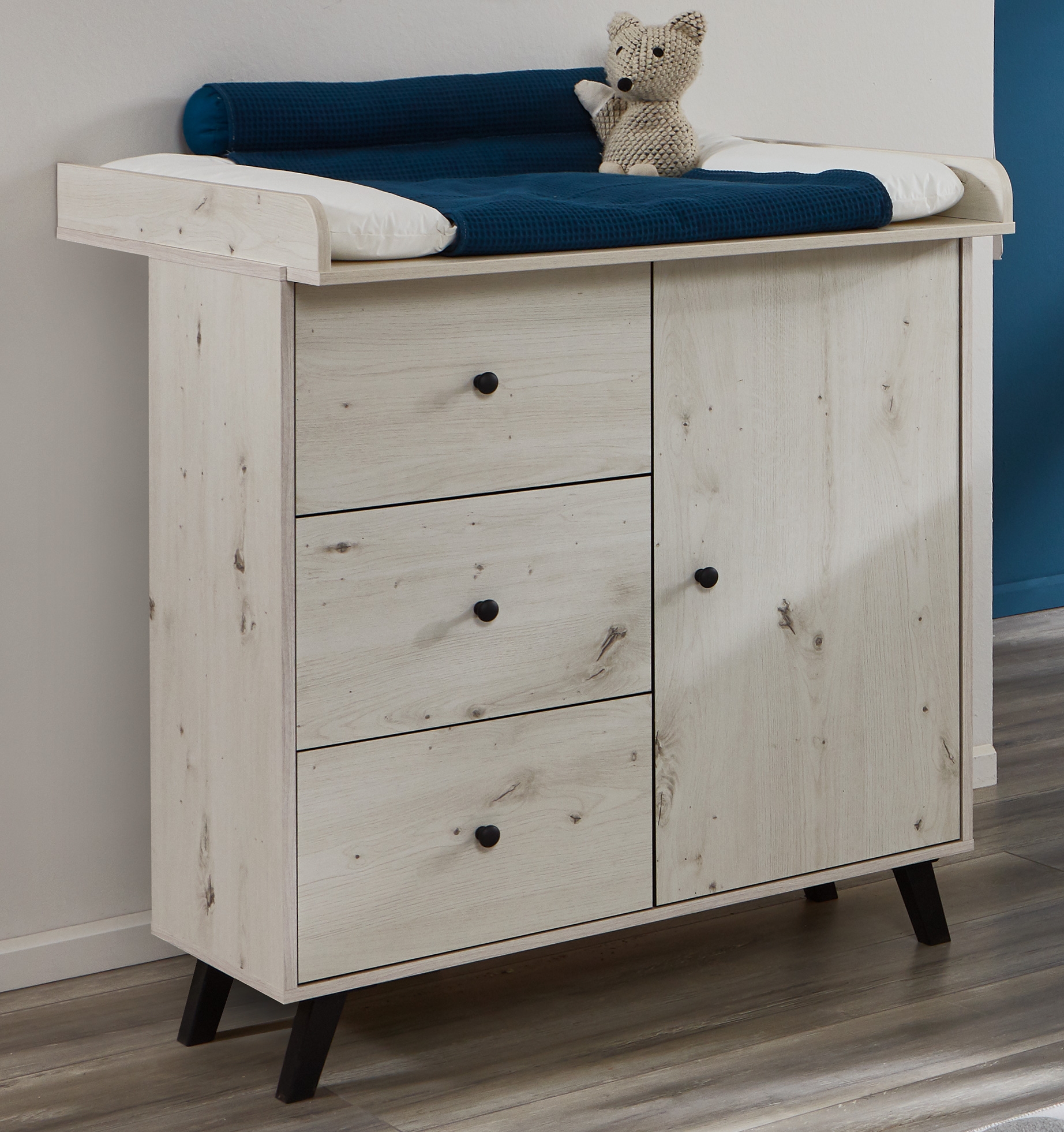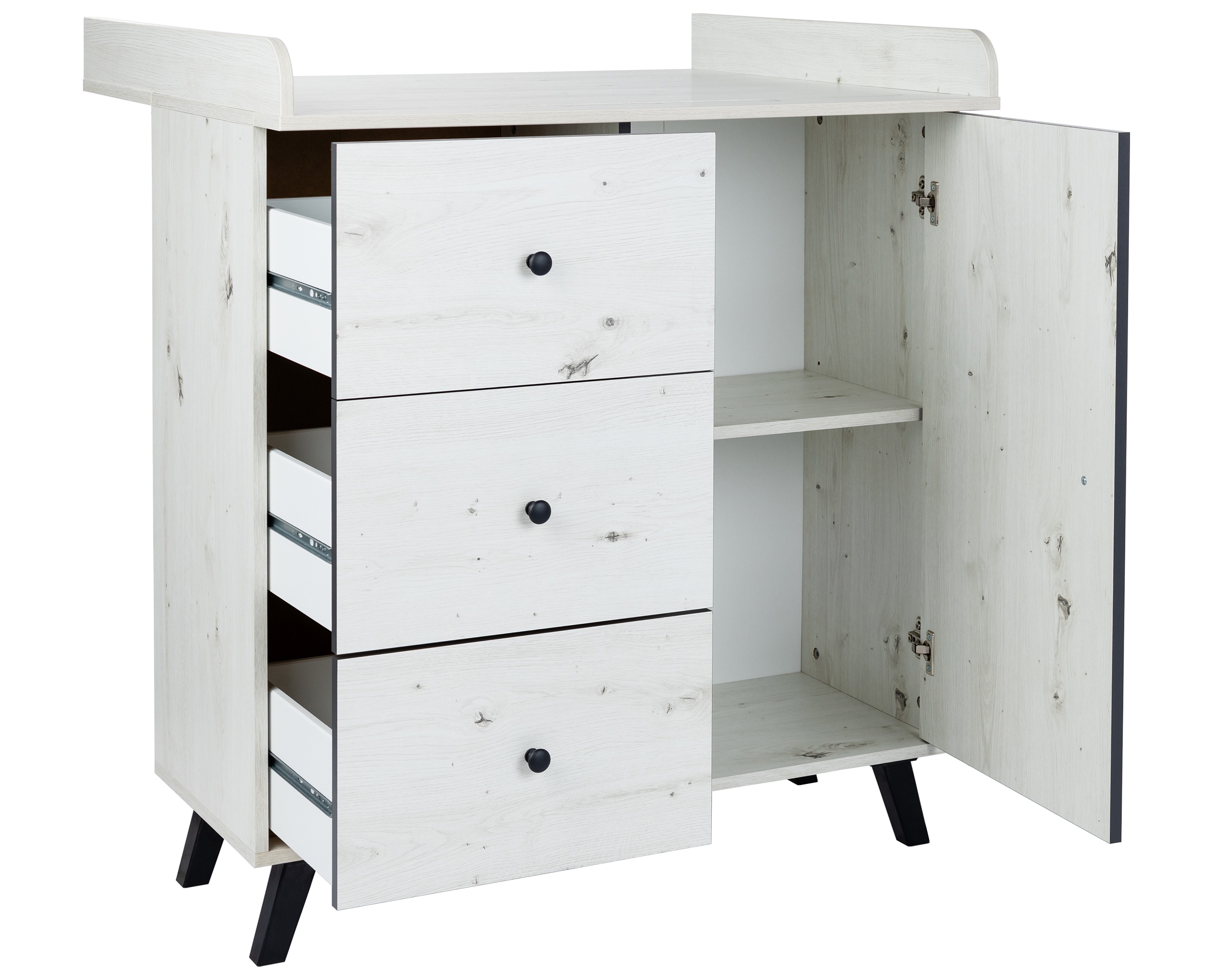 | Ausstattung Kommoden Phono Büro Regal: | Schublade(n), Türe(n), inkl. Wickelaufsatz | ||