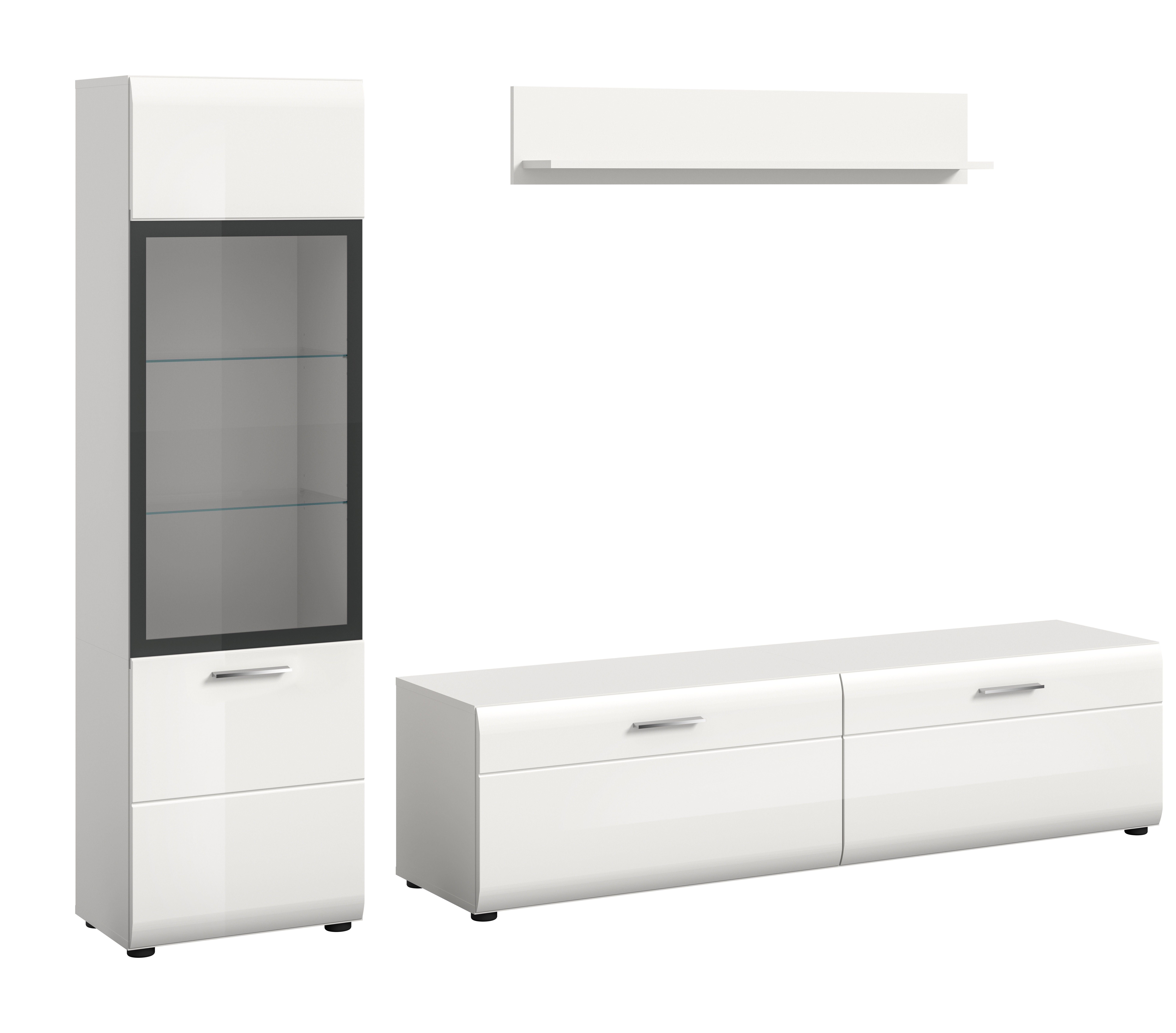 - 3-teilige Wohnkombination, bestehend aus: 1x Vitrine, 1x Lowboard, 1x Wandboard