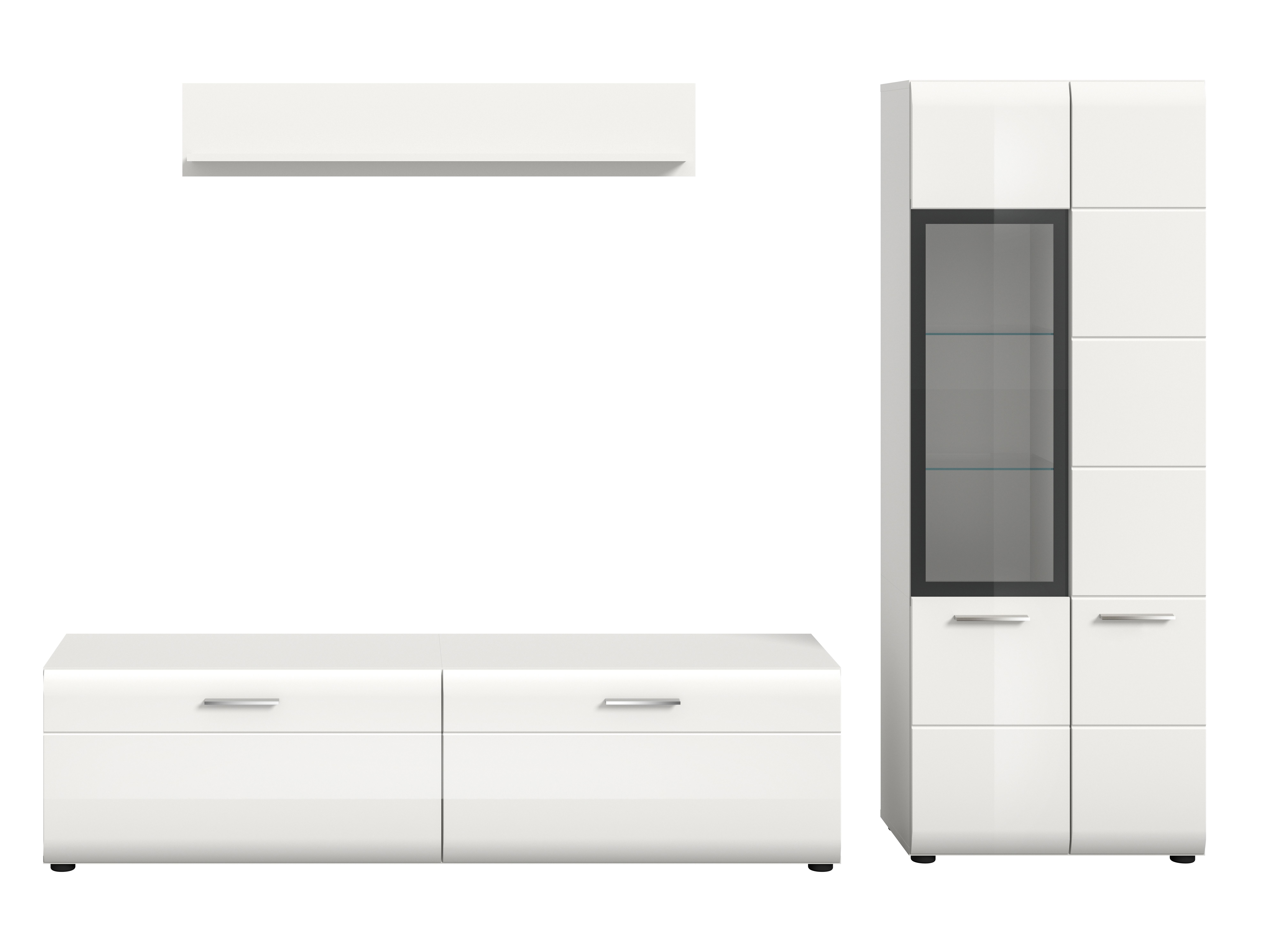 - 3-teilige Wohnkombination, bestehend aus: 1x Vitrine, 1x Lowboard, 1x Wandboard
