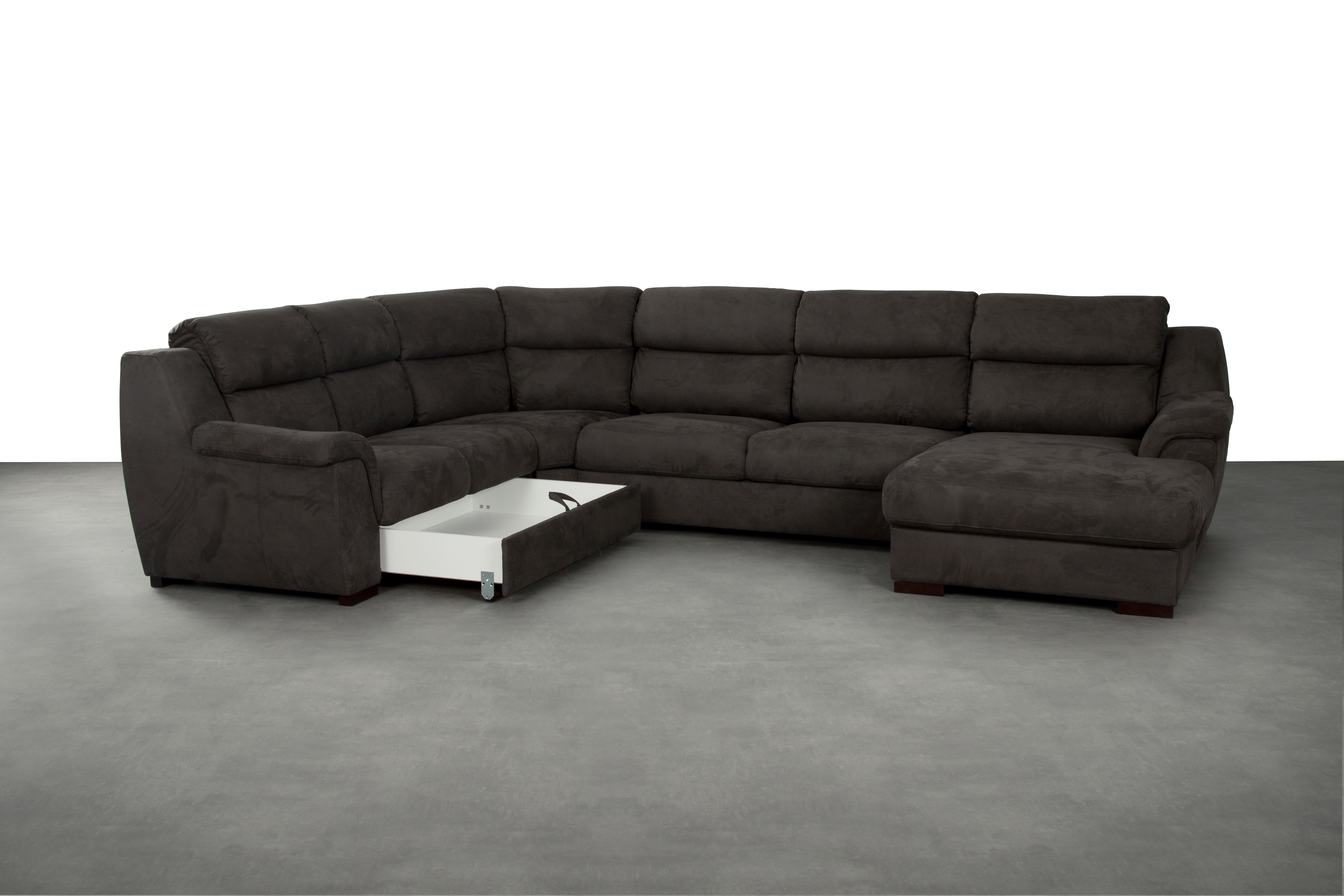 | Ausstattung Polster: | Ottomane rechts, Rücken echt, inkl. Bettkasten | ||
