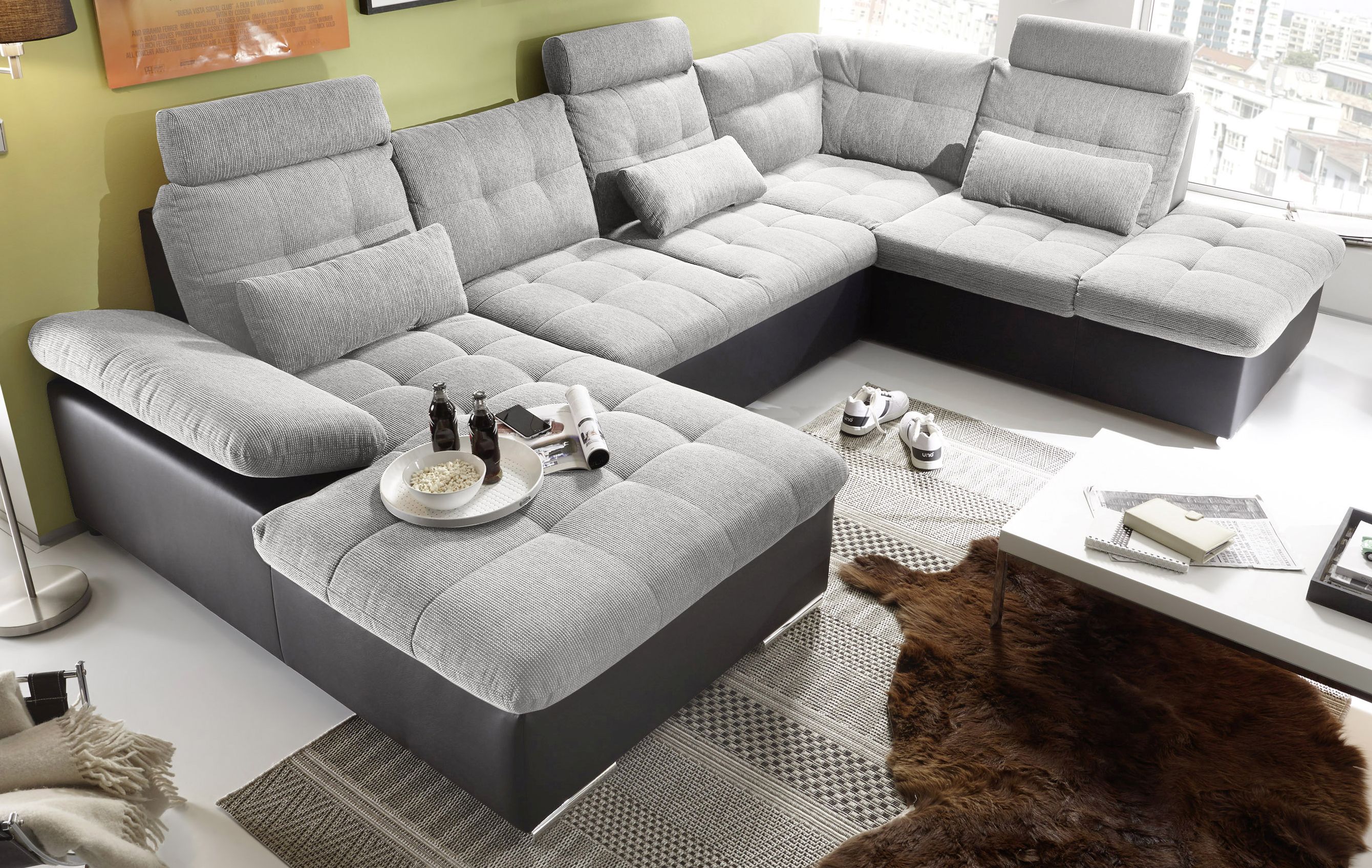 Bezug: Korpus in einem Lederlook 1114 in der Farbe schwarz aus 100% Polyurethan; Sitz, Rückenkissen, Nierenkissen und Kopfstützen im Stoff Sumatra 6 in der Farbe silver aus 100% Polyester