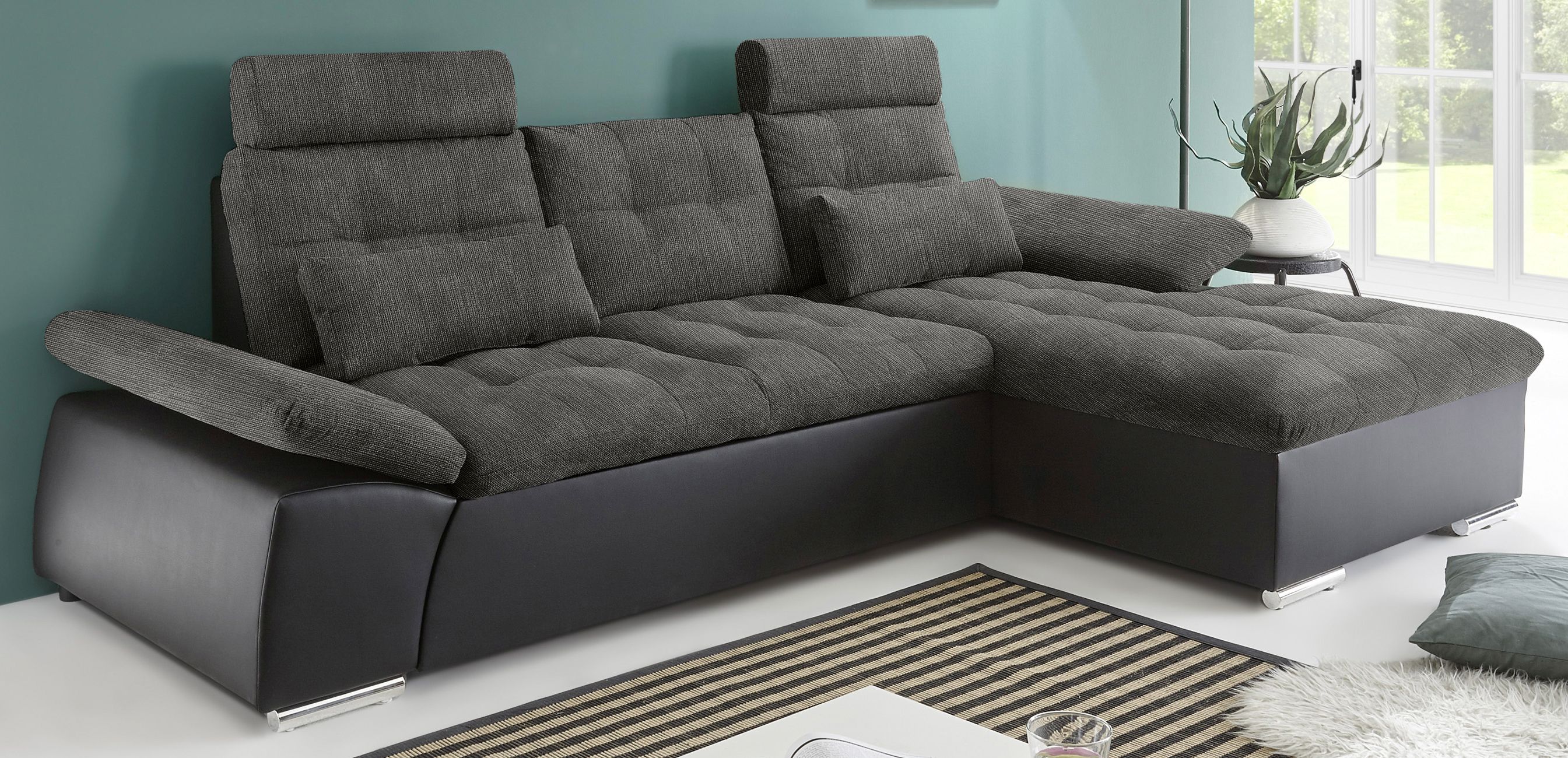 Ausstattung Polster: | Kopfstützen, Ottomane rechts, Rücken echt, inkl. Kissen |