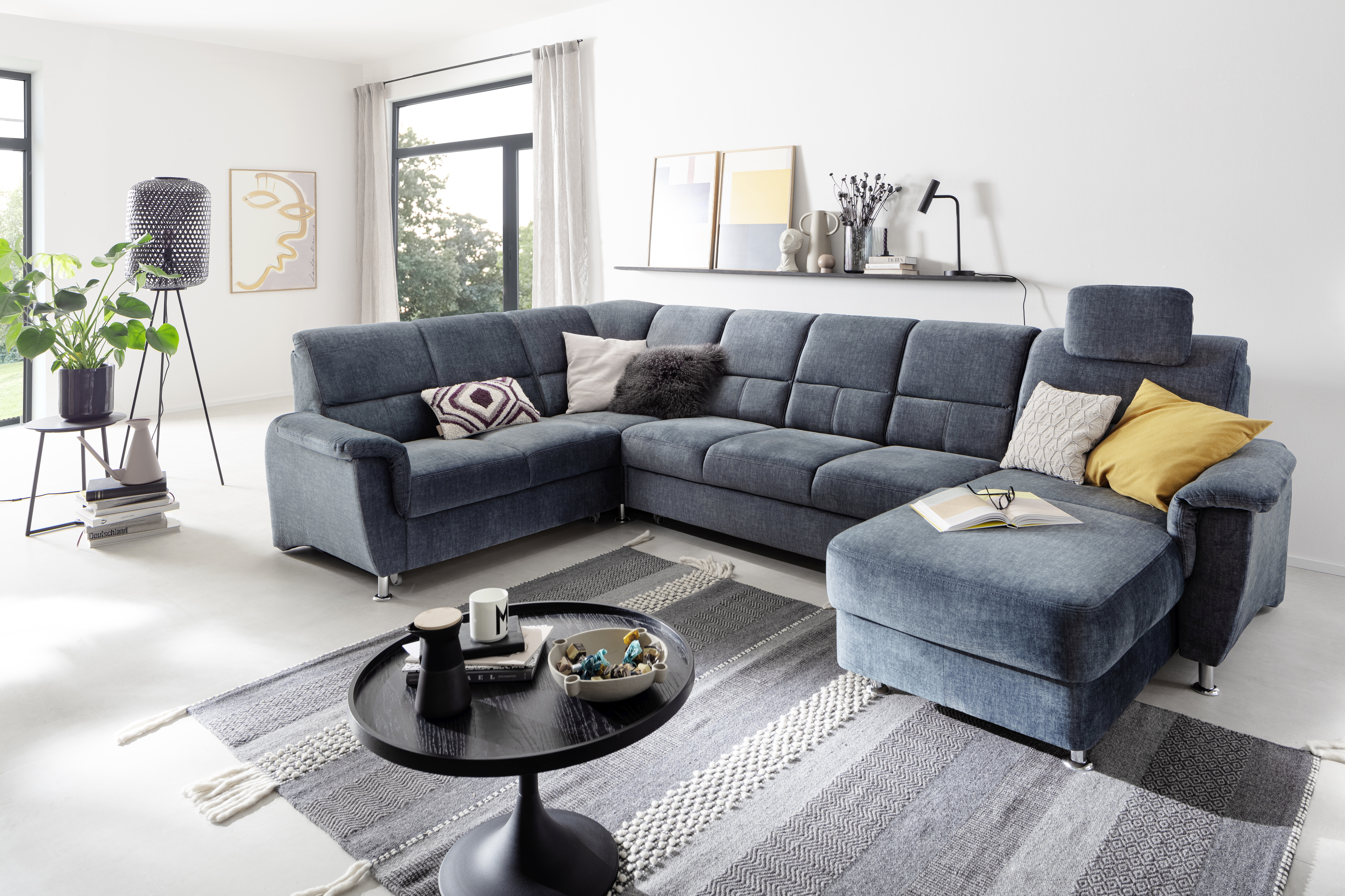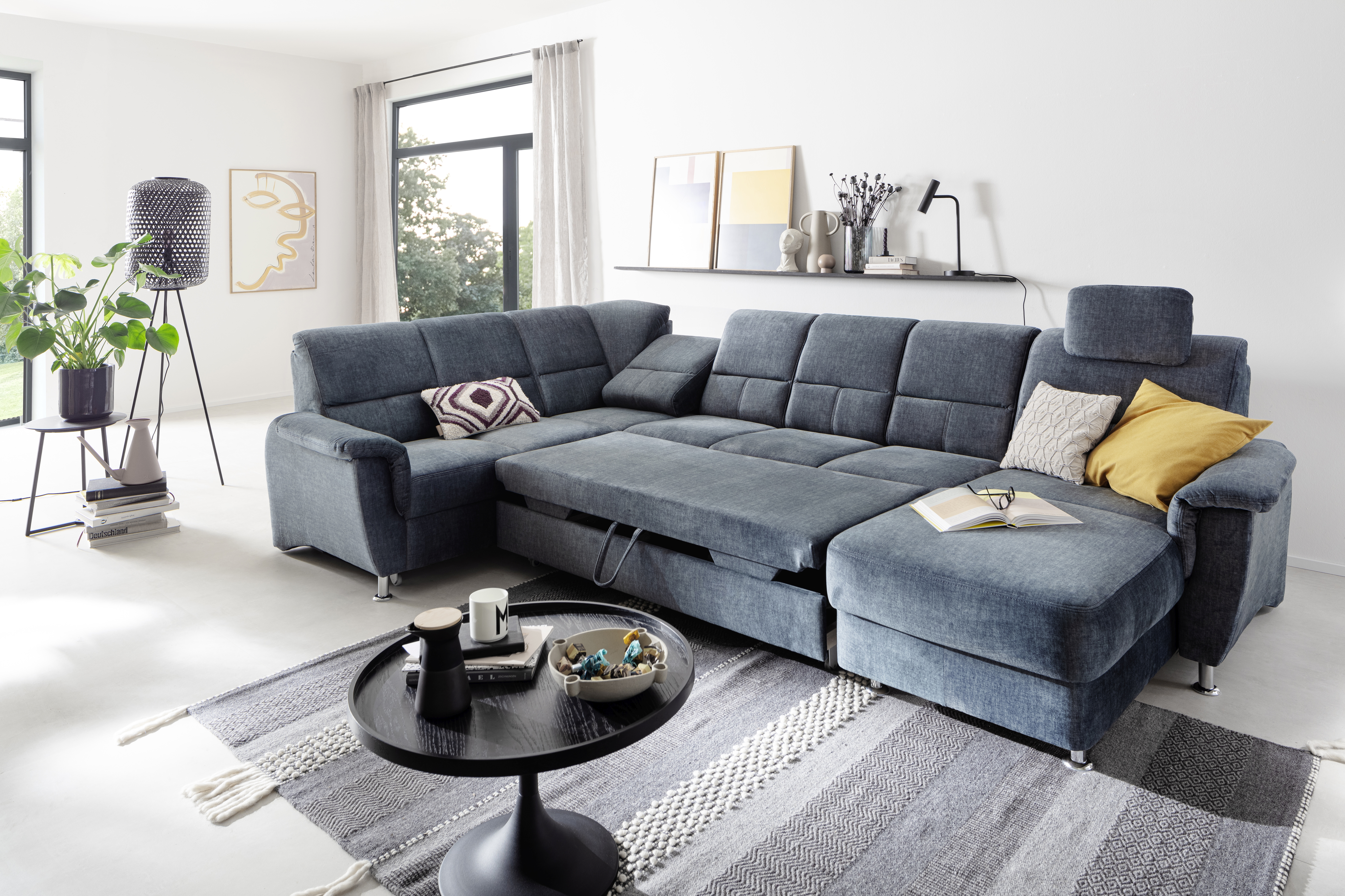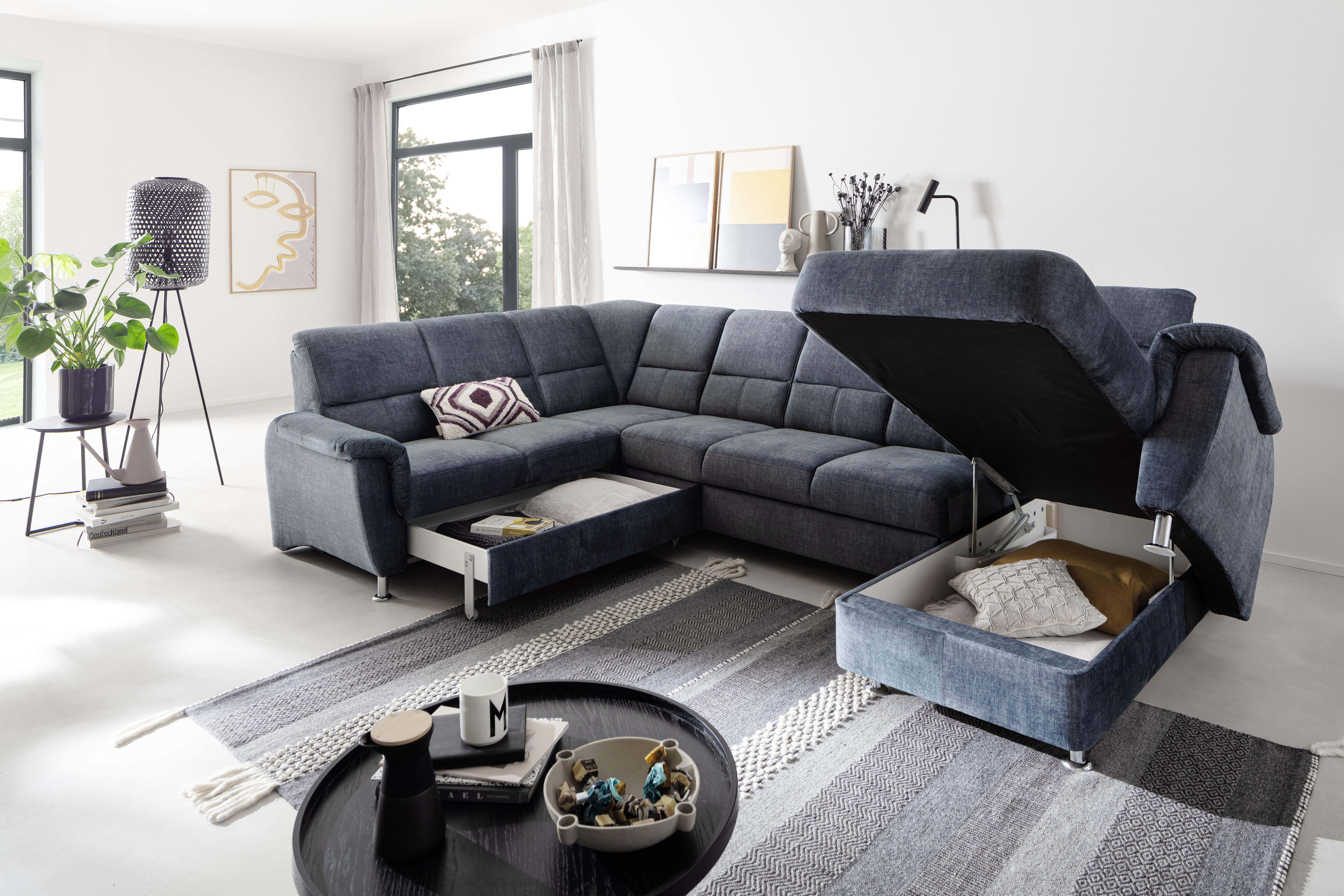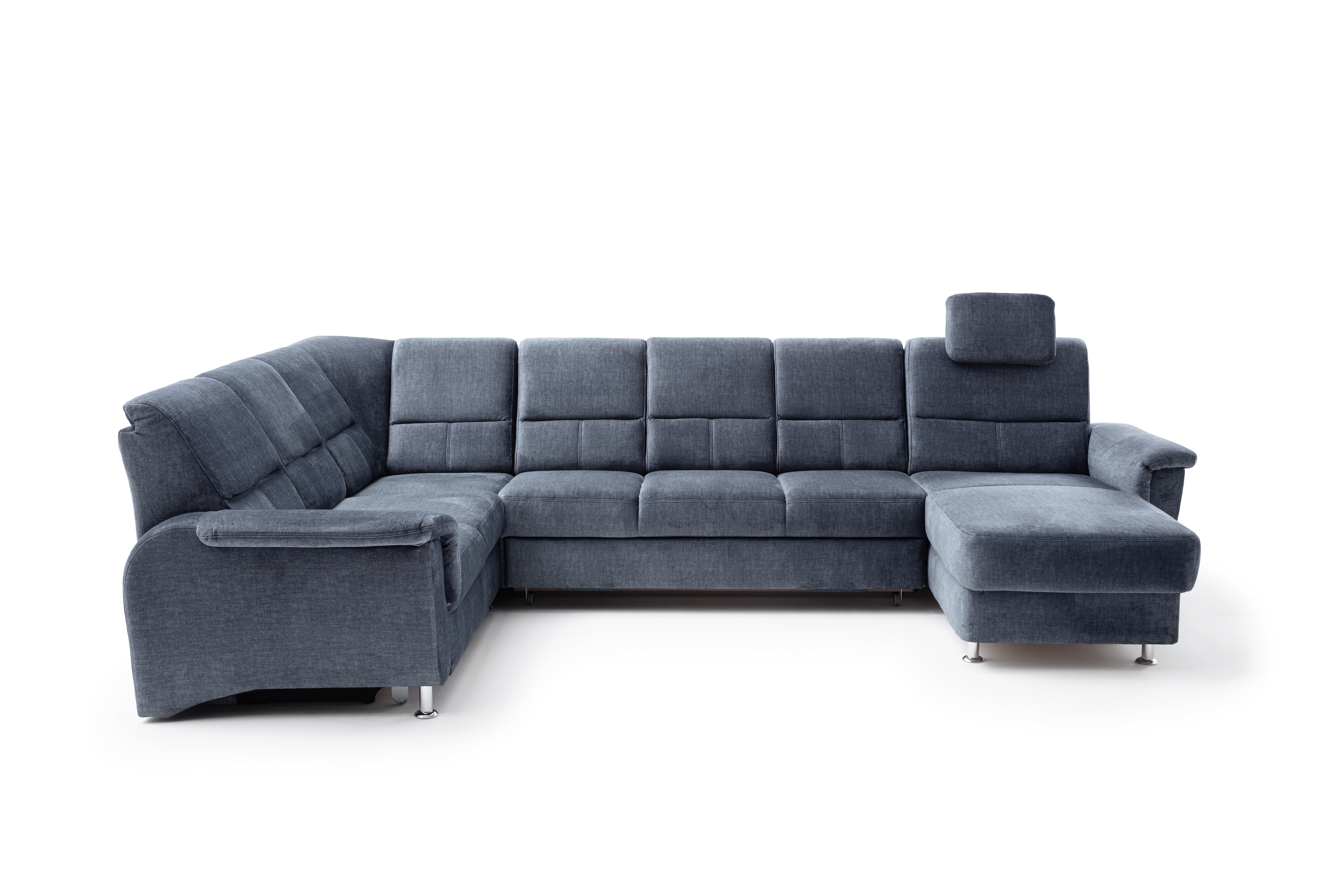 | Ausstattung Polster: | Kopfstützen, Ottomane rechts, Rücken echt, inkl. Bettkasten | ||