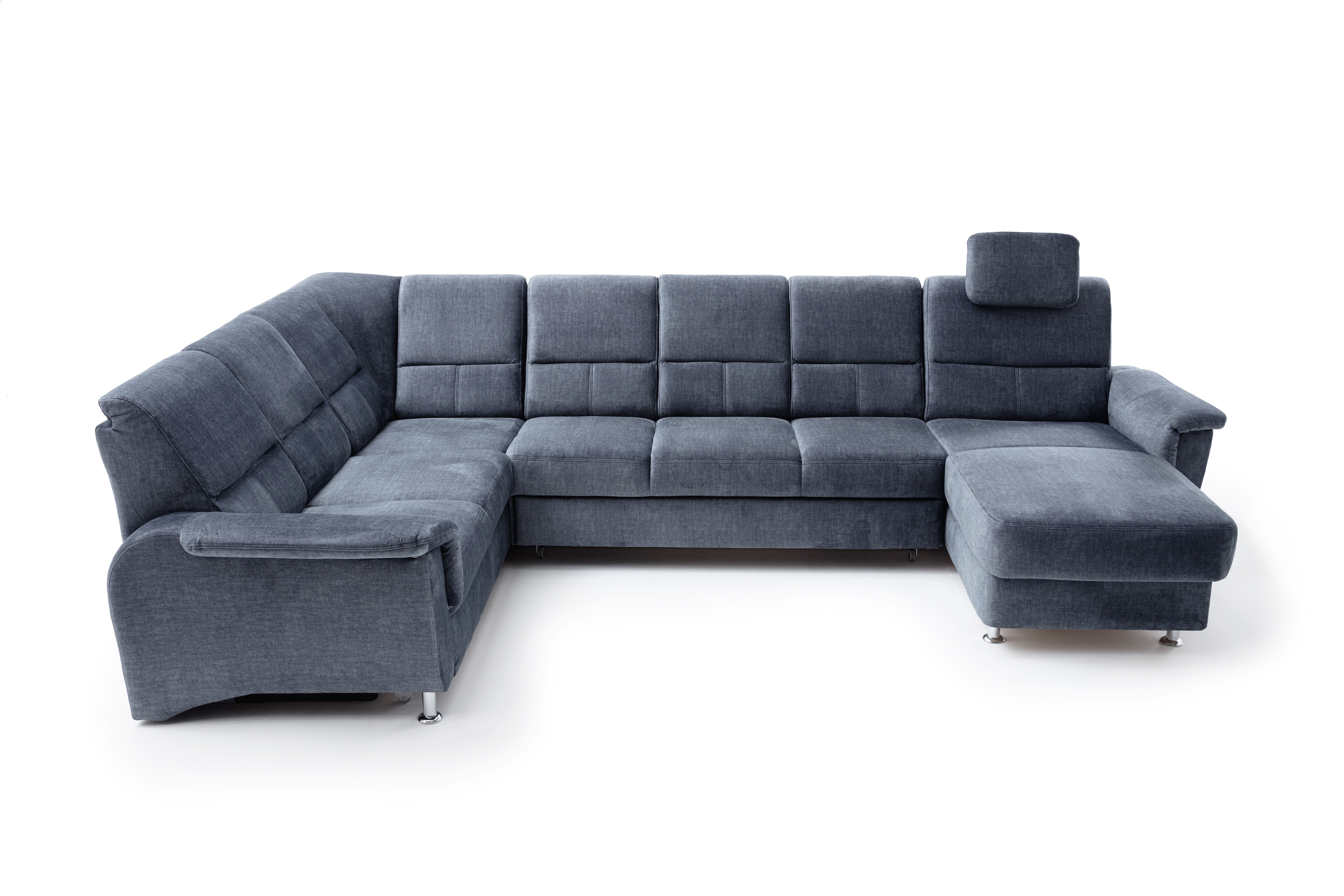| Ausstattung Polster: | Kopfstützen, Ottomane rechts, Rücken echt, inkl. Bettkasten | ||