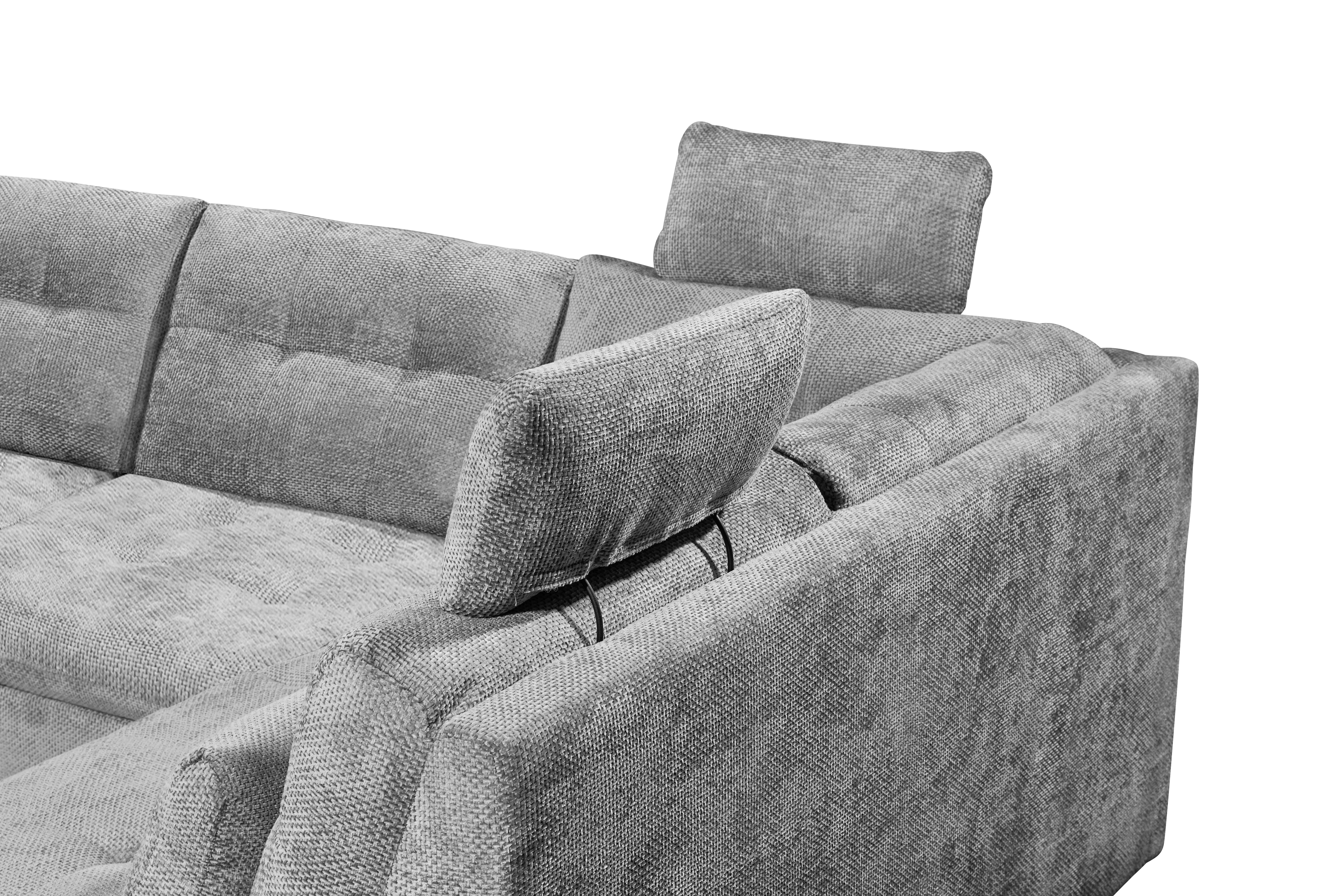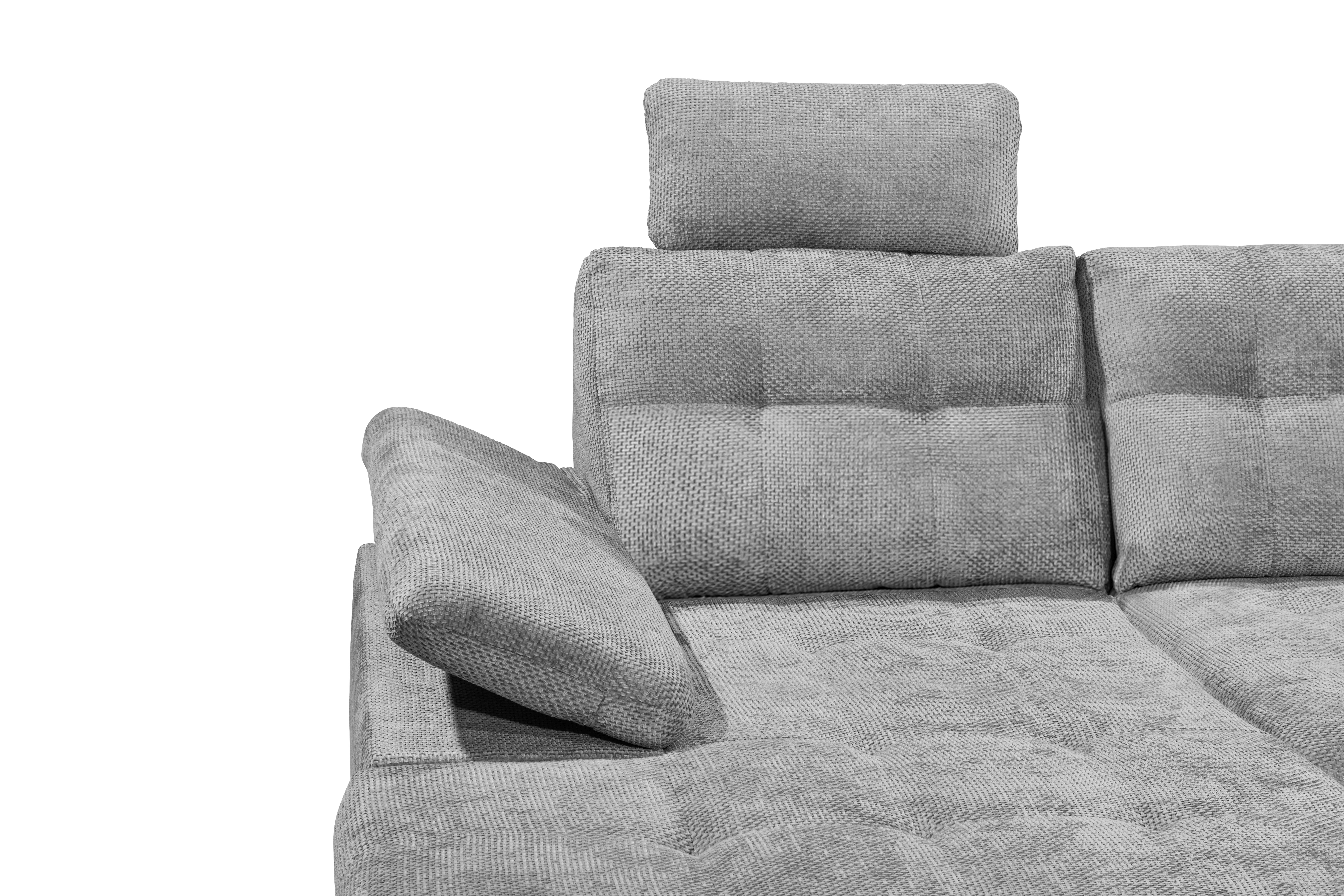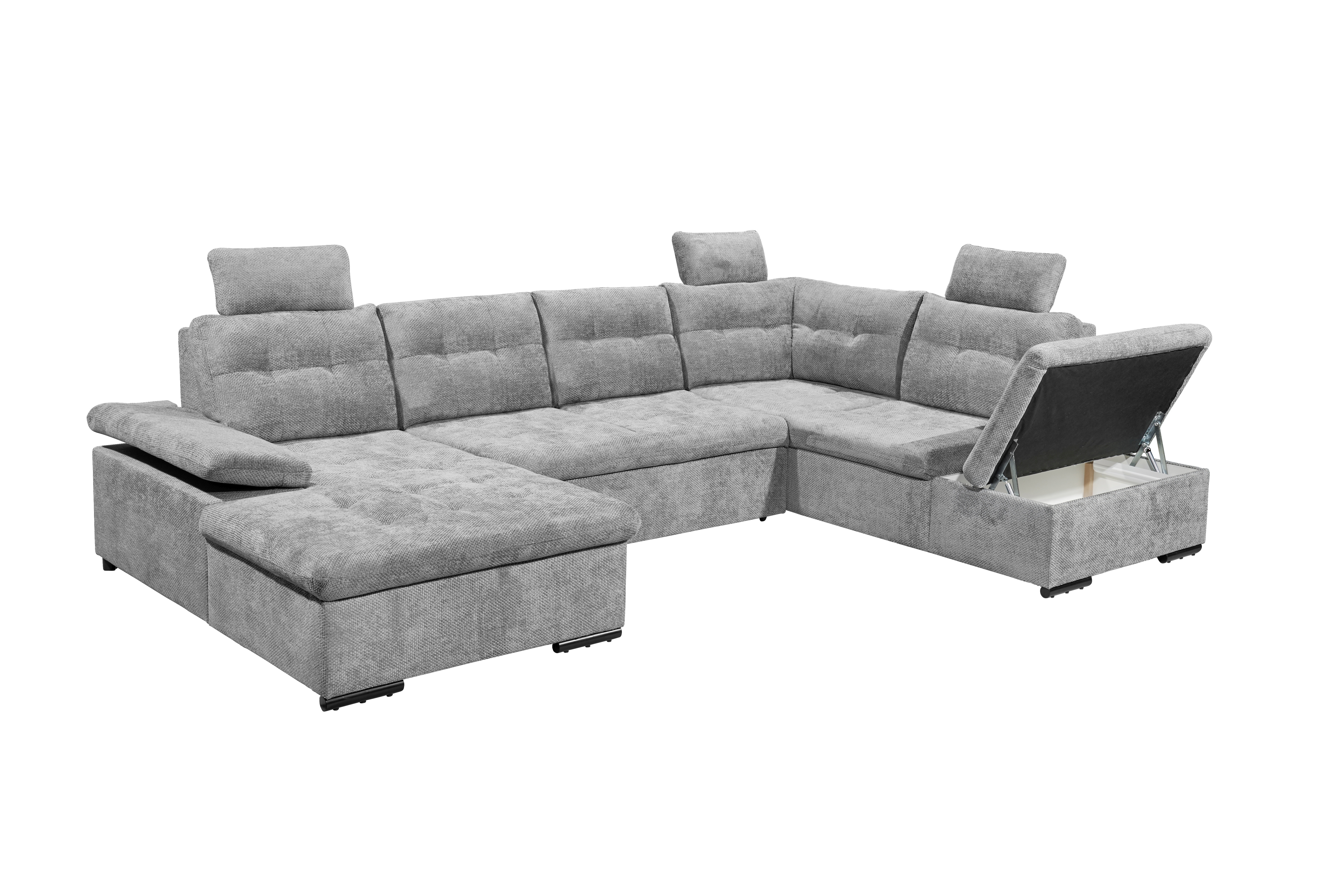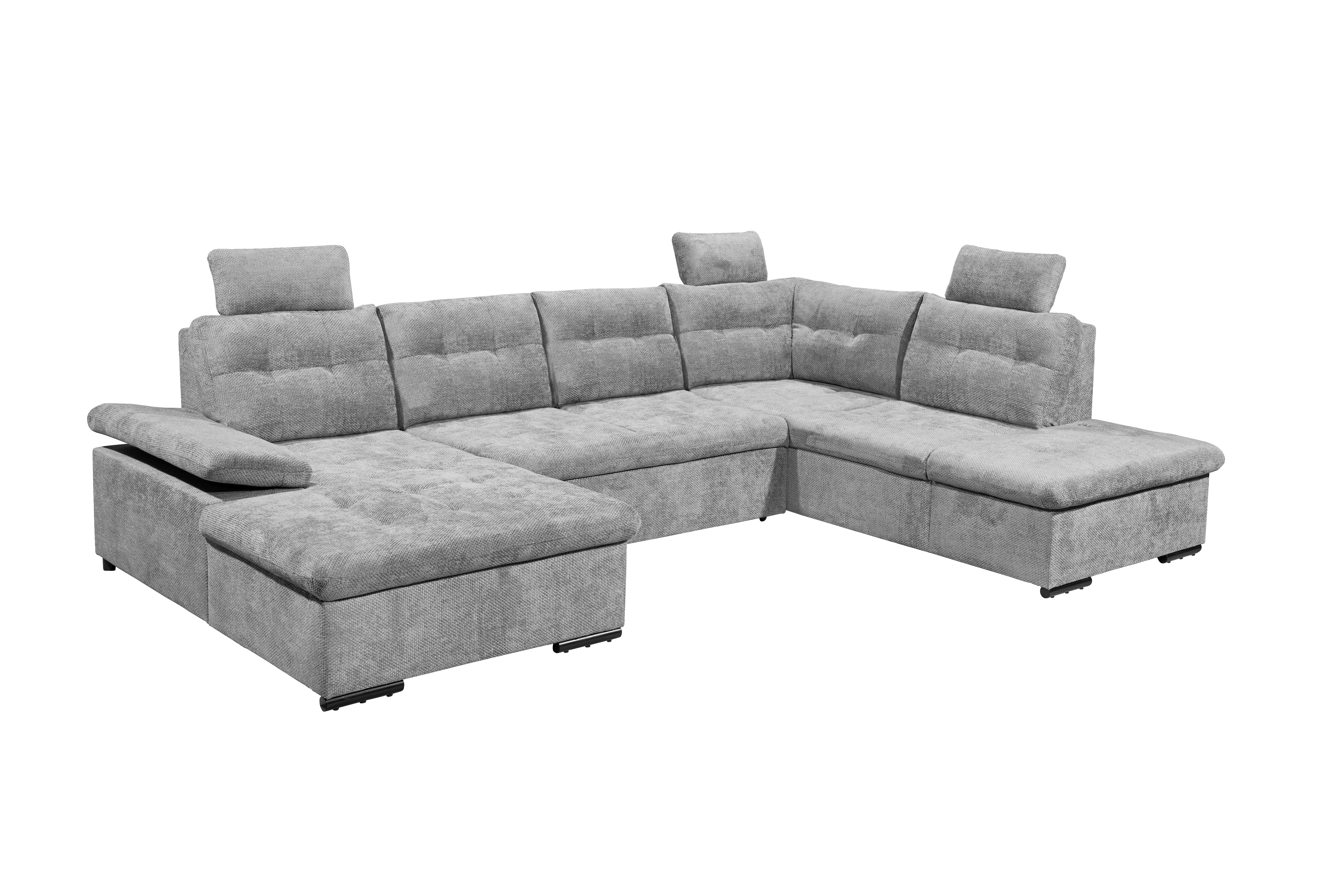 Diese funktionale Wohnlandschaft im Stoffbezug Eden 18 in der Farbe Grey bietet vielseitige Nutzungsmöglichkeiten für den Wohnbereich. Der mittelfeste Sitzkomfort basiert auf einer Wellenunterfederung im Sitz und einer Schaumpolsterung im Rücken. Drei steckbare Kopfstützen und eine verstellbare Armlehne ermöglichen individuelle Anpassung. Die Schlaffunktion mit Delfinbeschlag verwandelt die Wohnlandschaft bei Bedarf schnell in eine Liegefläche, während ein integrierter Bettkasten zusätzlichen Stauraum bietet. Der Rücken ist mit Echtstoff bezogen und erlaubt eine flexible Platzierung im Raum. Mit ihrer stabilen Bauweise aus Holzwerkstoffen ist diese Wohnlandschaft eine preisbewusste Lösung für komfortables Sitzen und Schlafen.