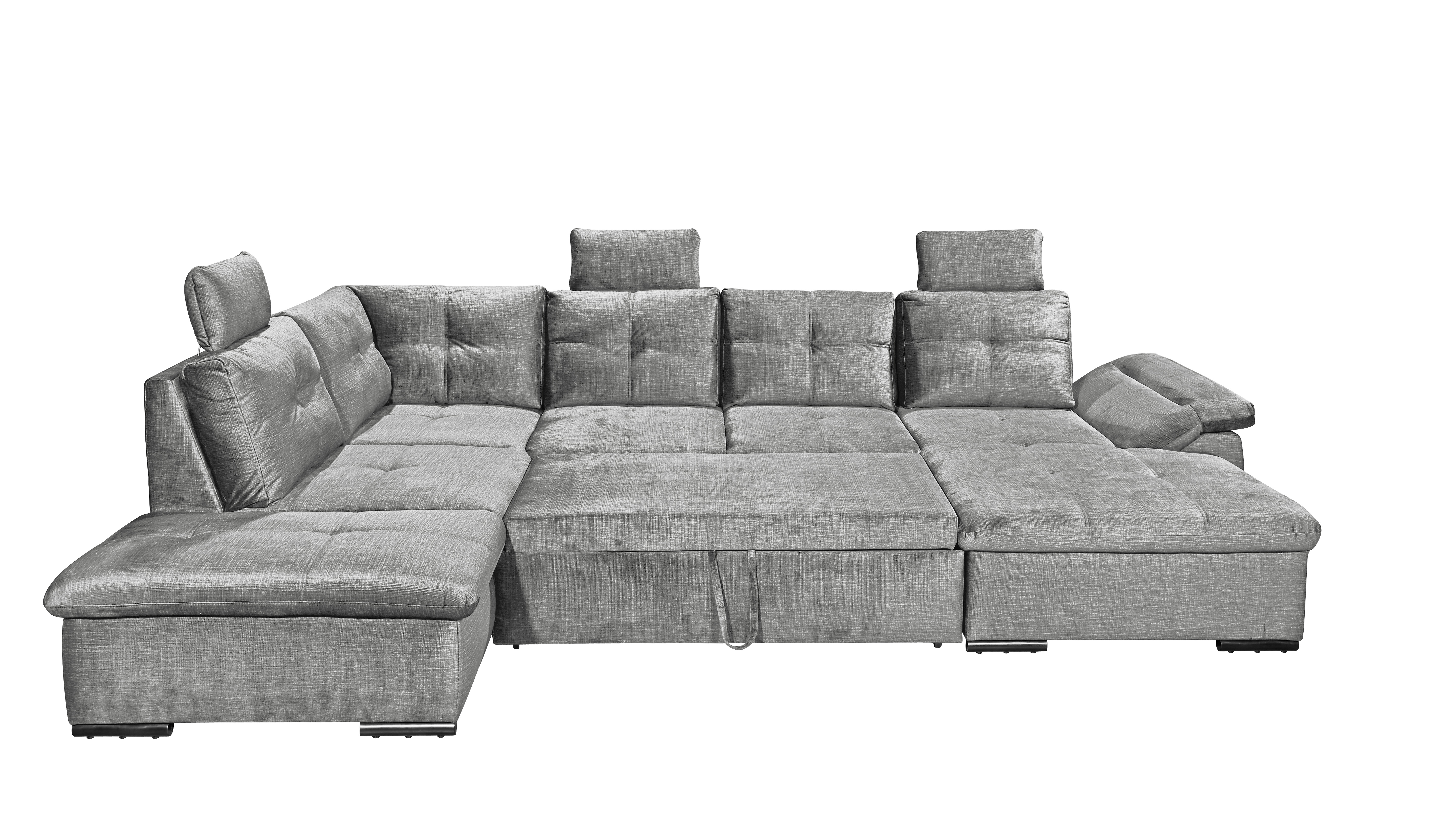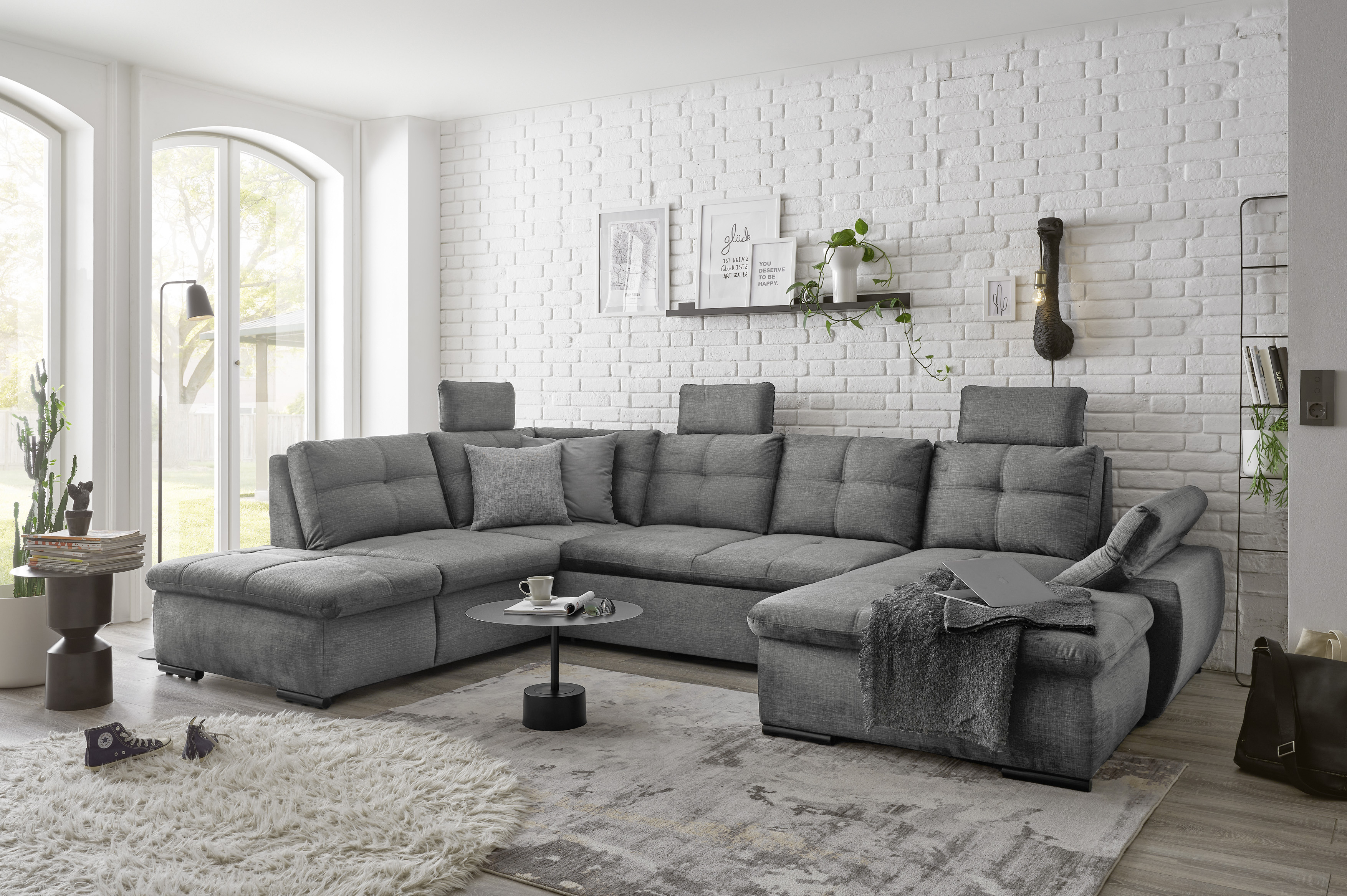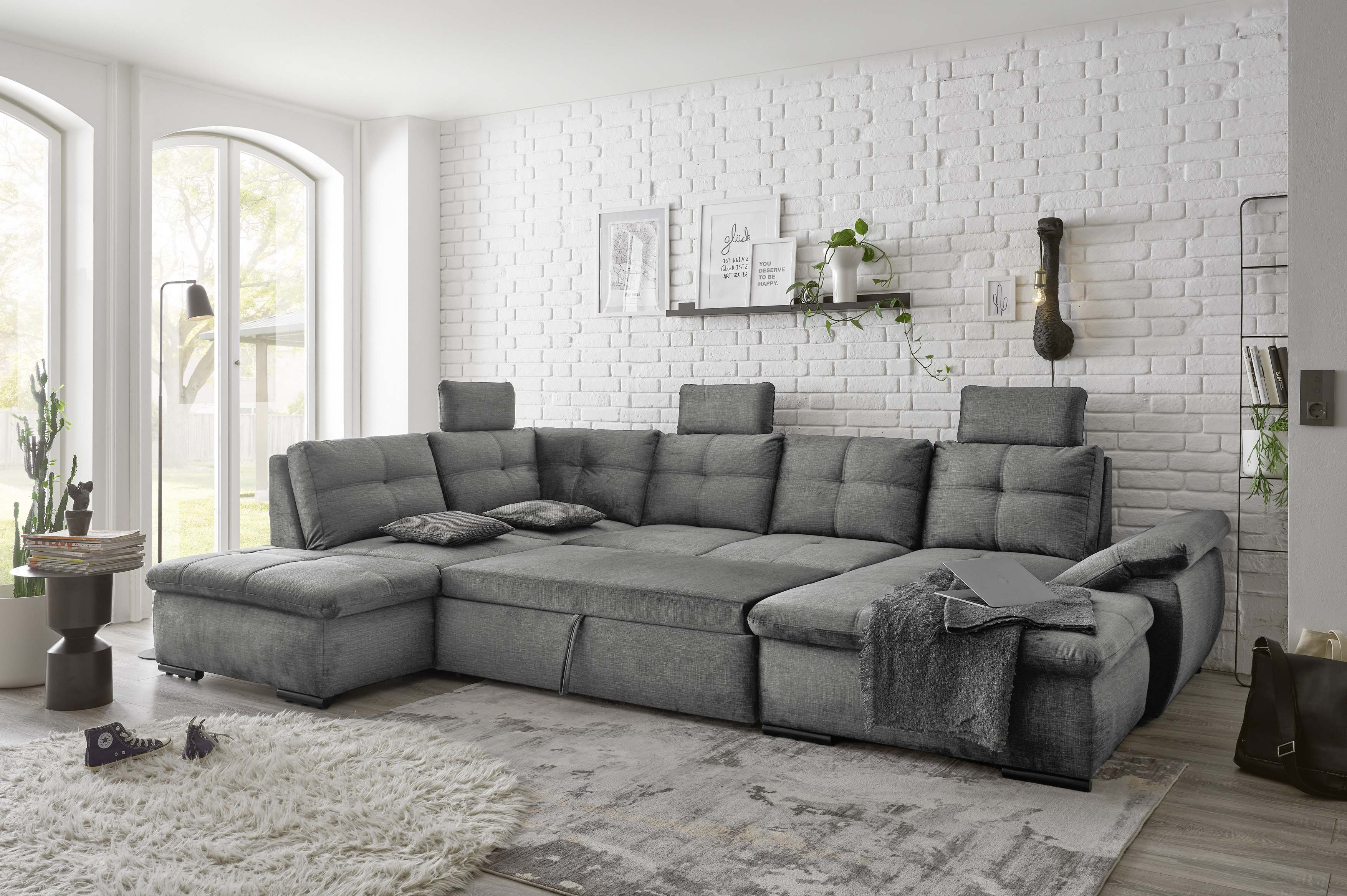 | Ausstattung Polster: | Kopfstützen, Ottomane links, Rücken echt, inkl. Bettkasten | ||