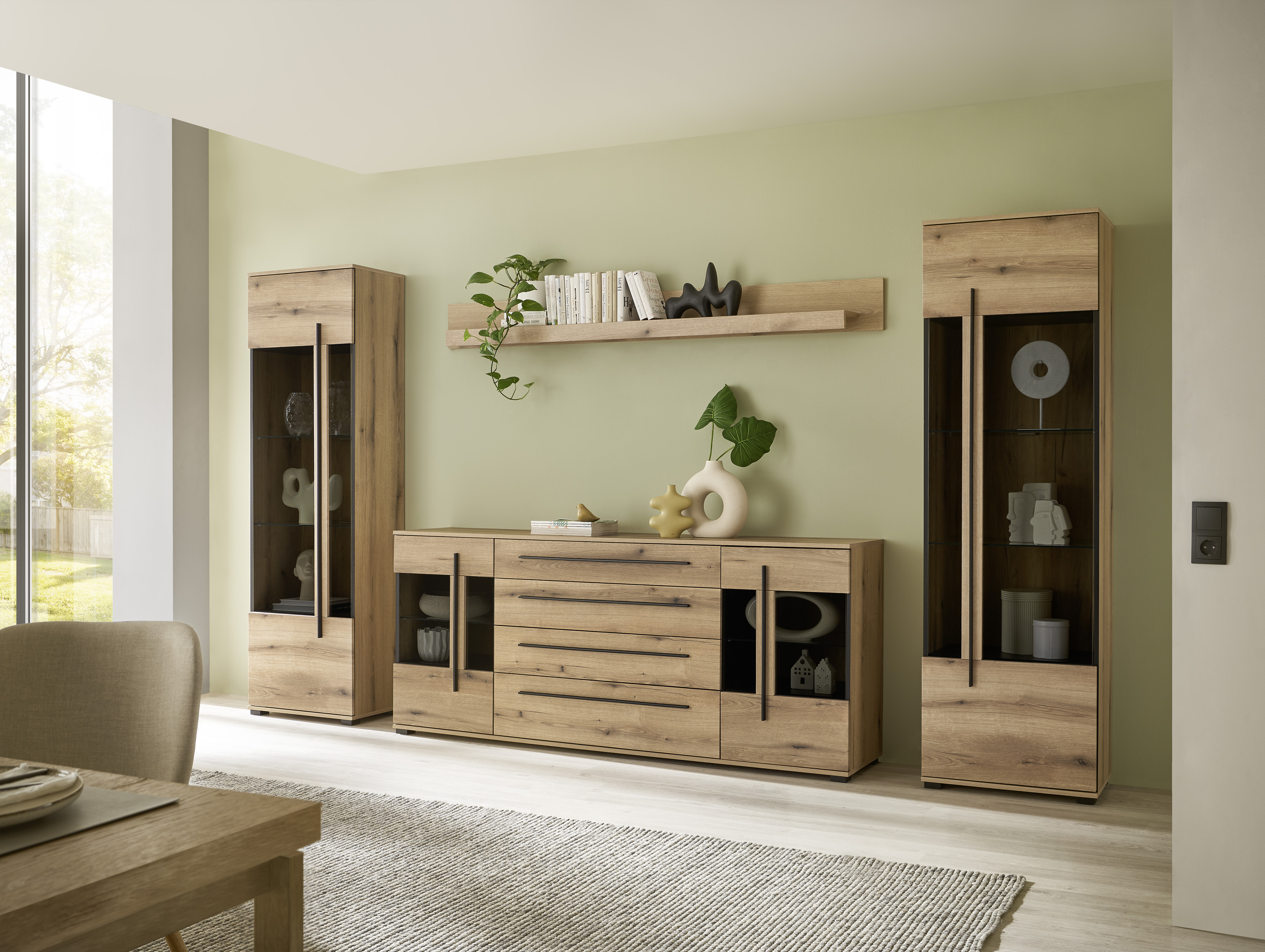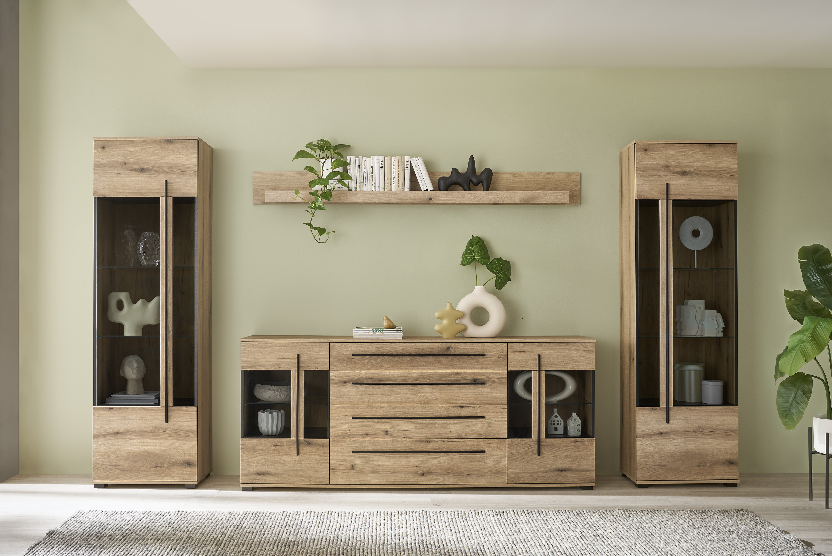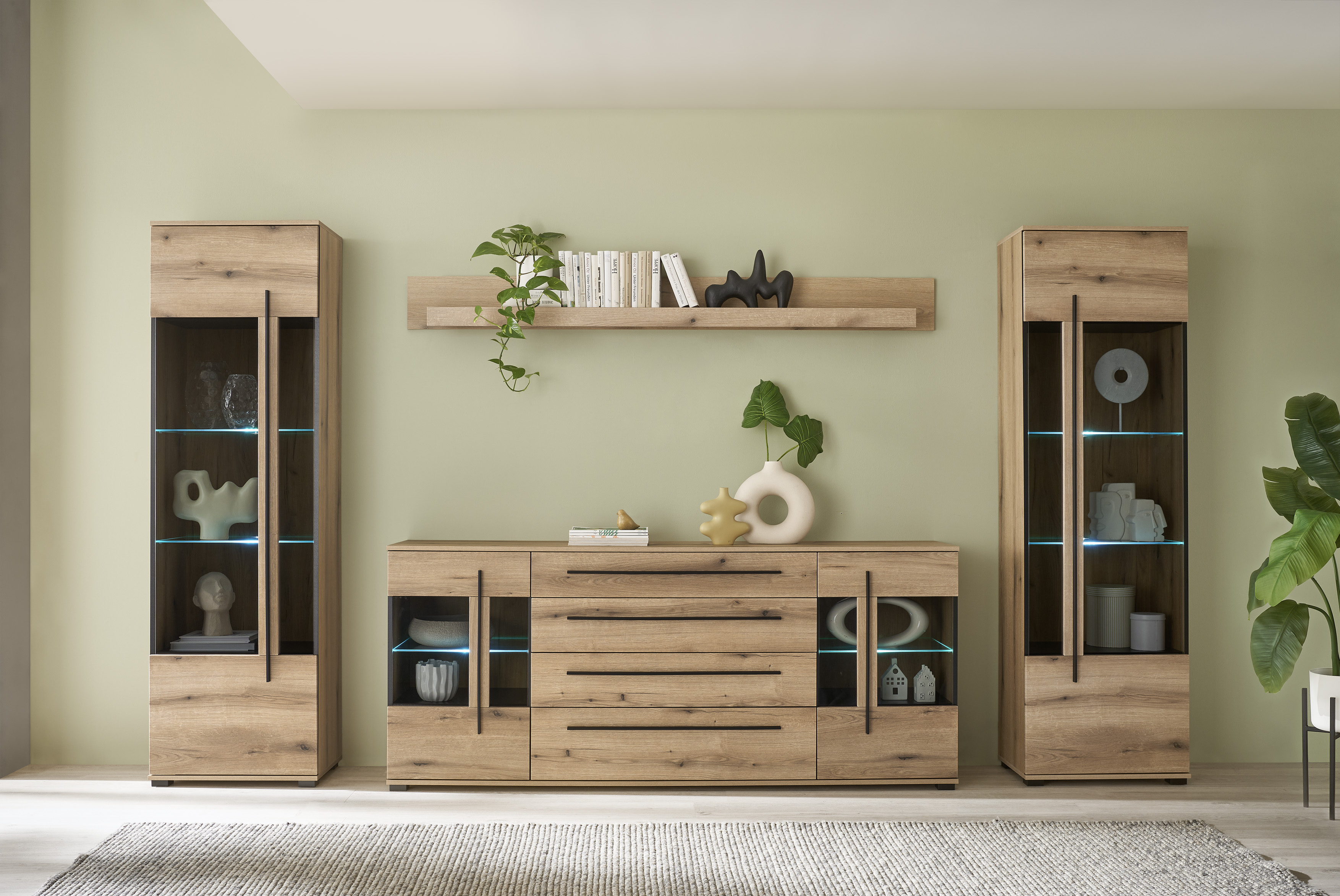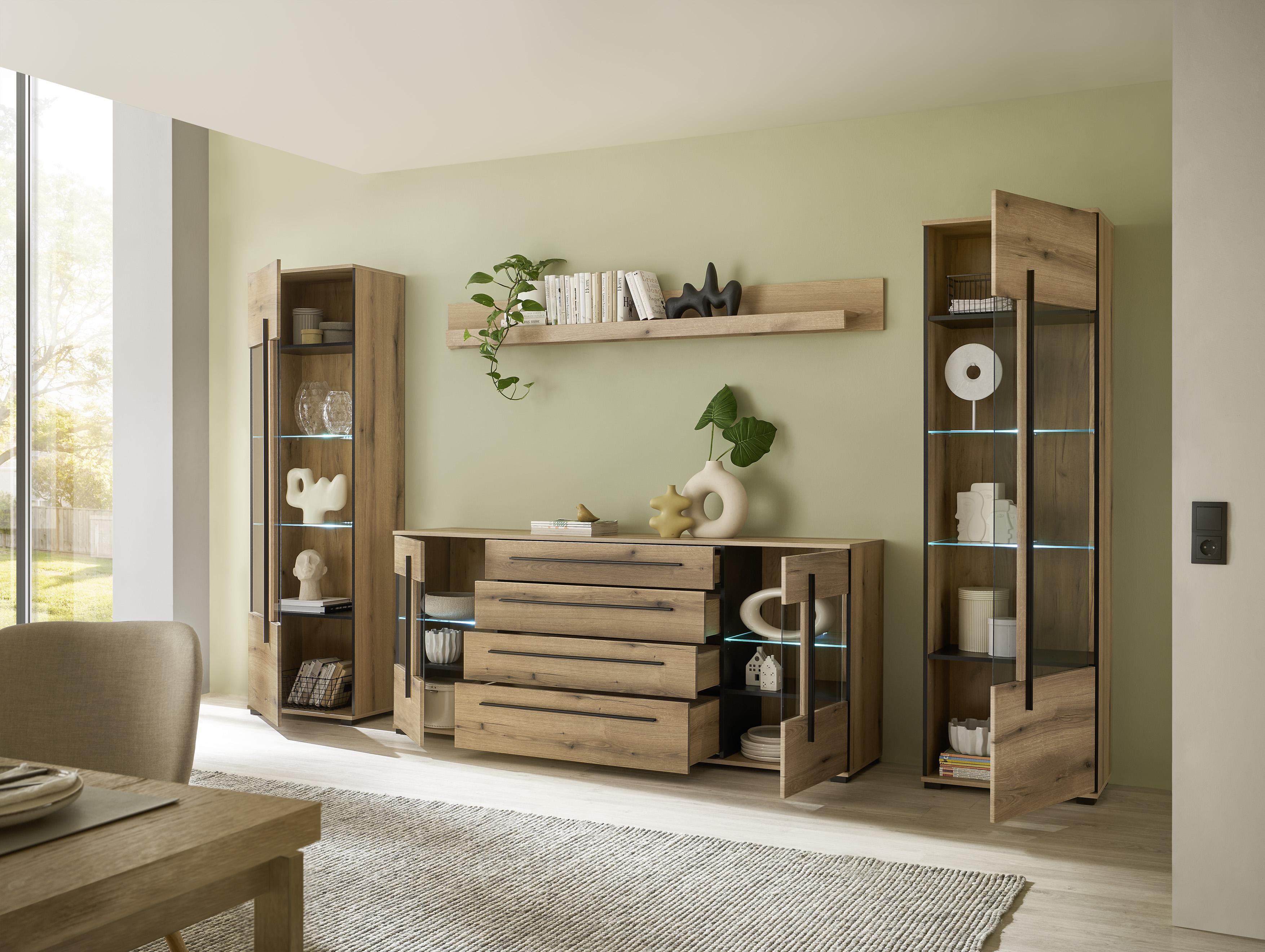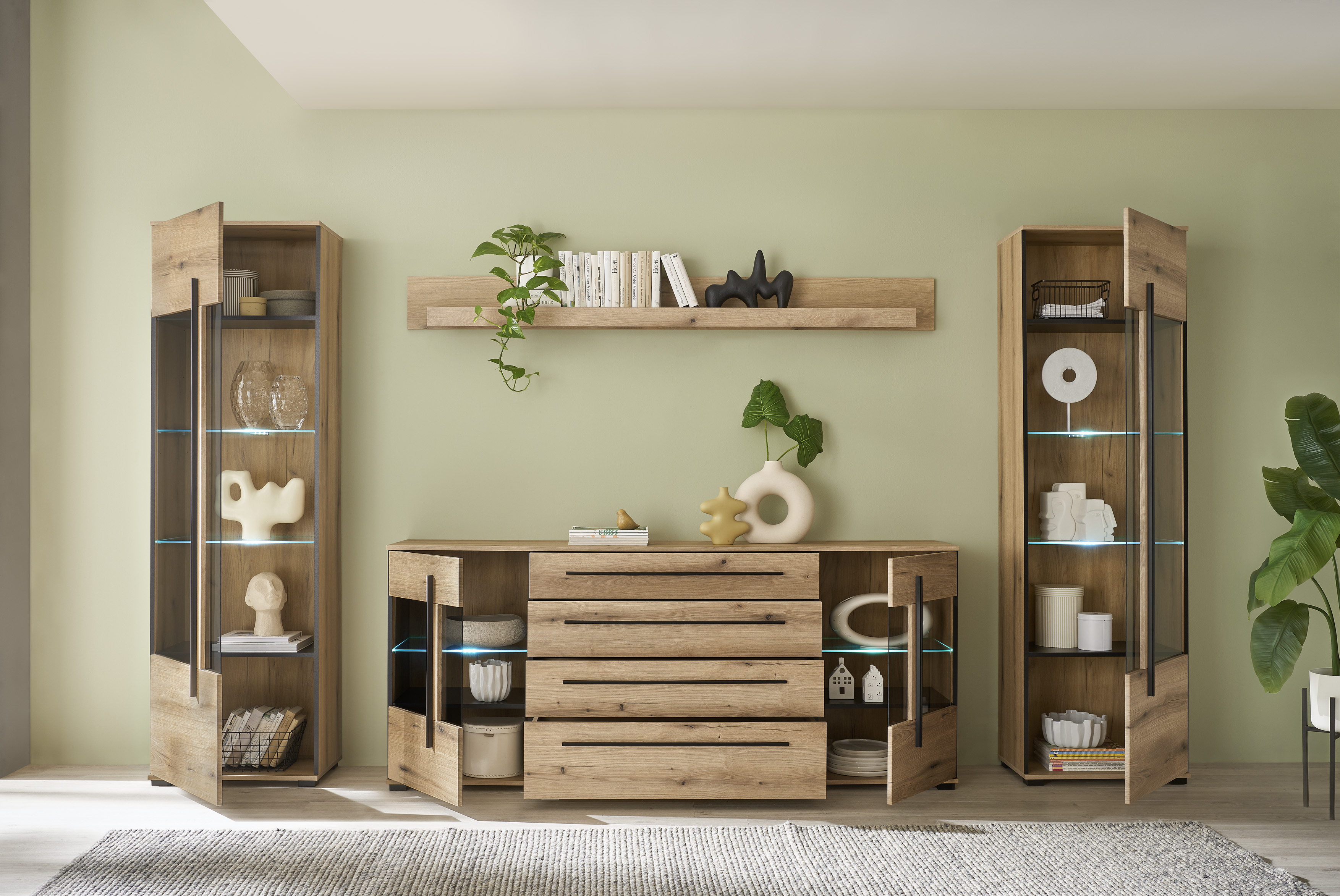 1 Sideboard mit 2 Türen, 2 Glasböden und 4 Schubkästen