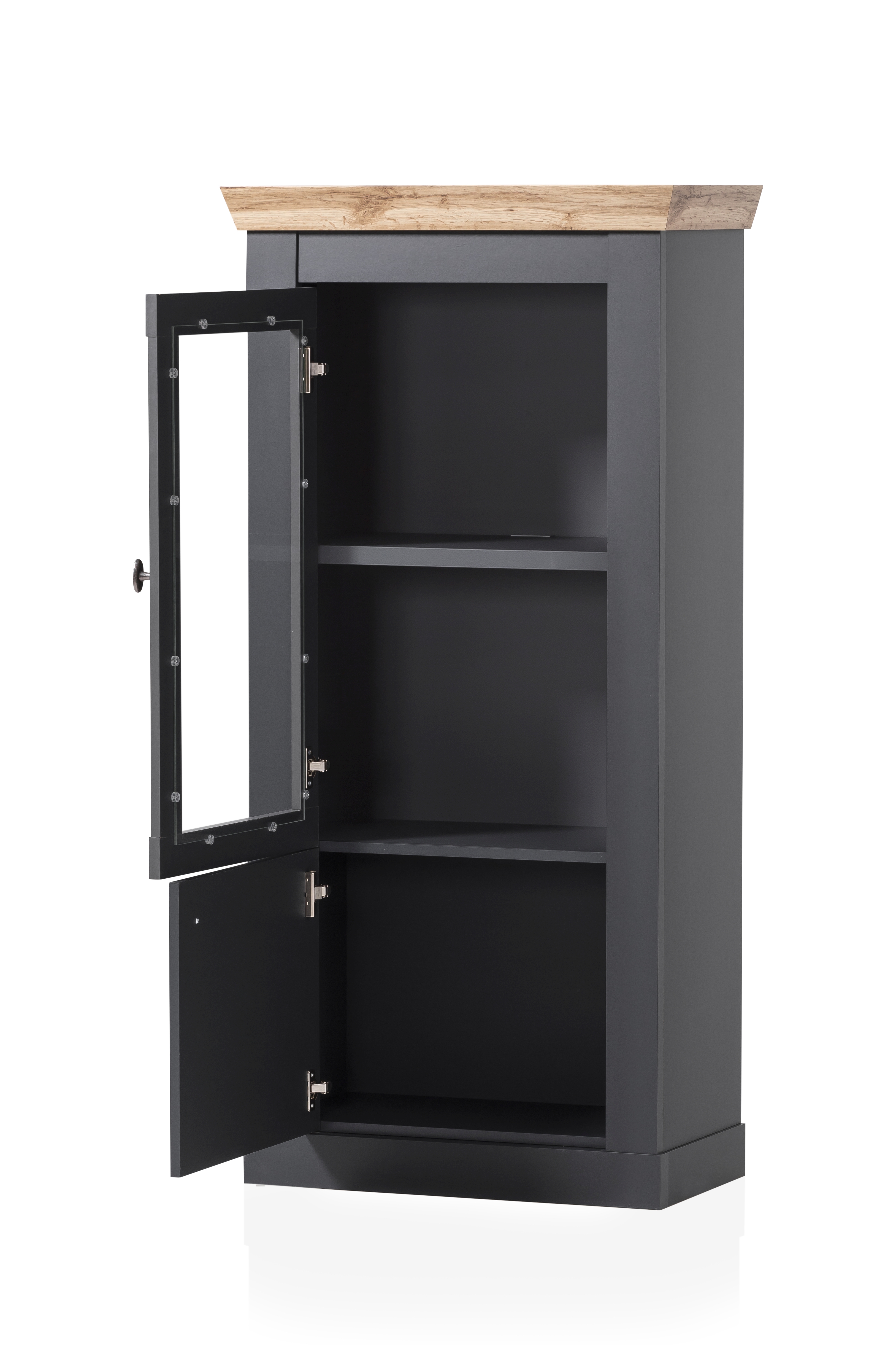 1 kleine Vitrine mit 1 Glasrahmentür, 1 Boden, 1 Tür (Türen rechts / links montierbar)