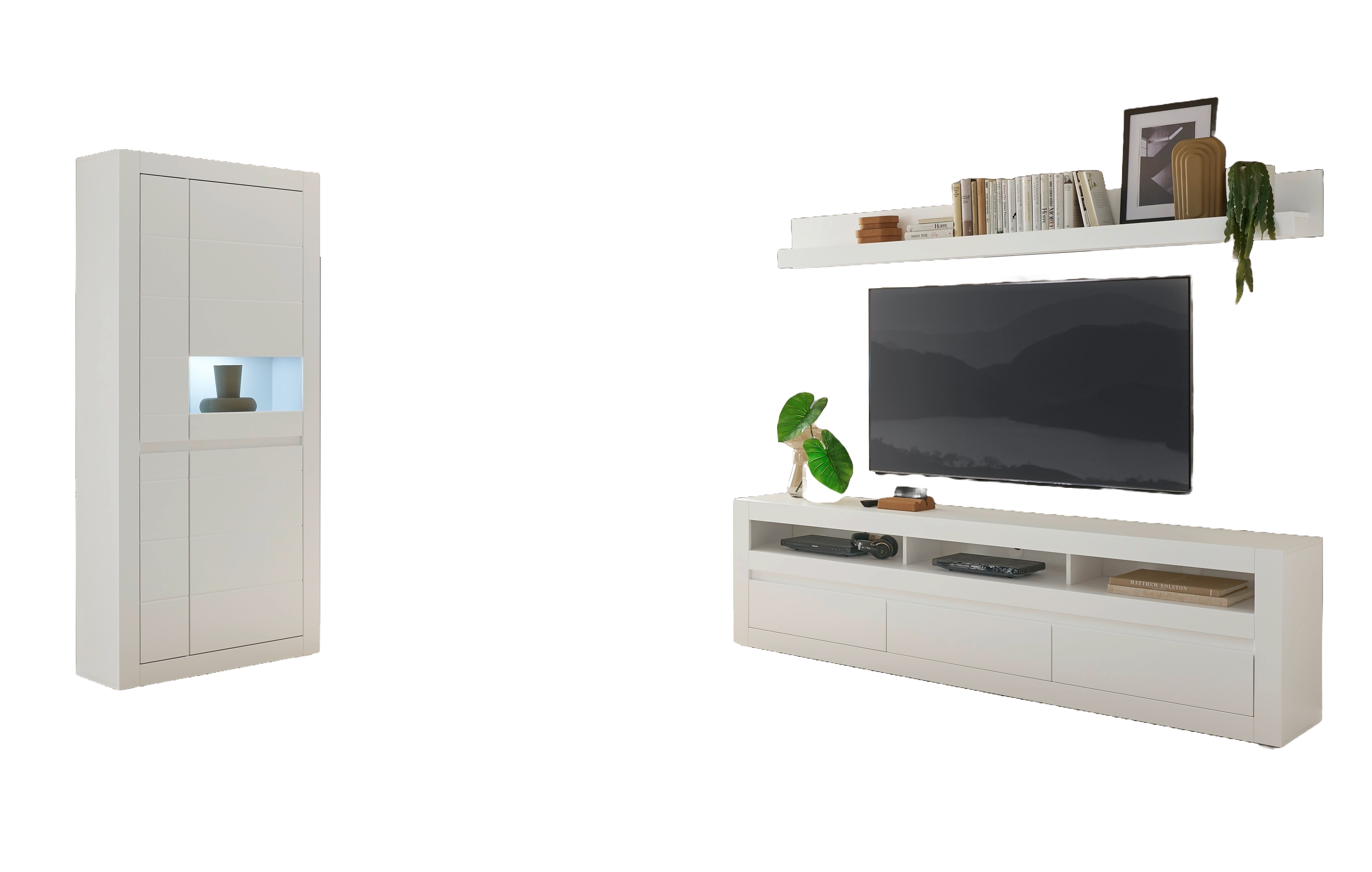 Front: Weiß Alpin S-Matt MDF (Mitteldichte Holzfaserplatte) Tiefzieh / Glas
