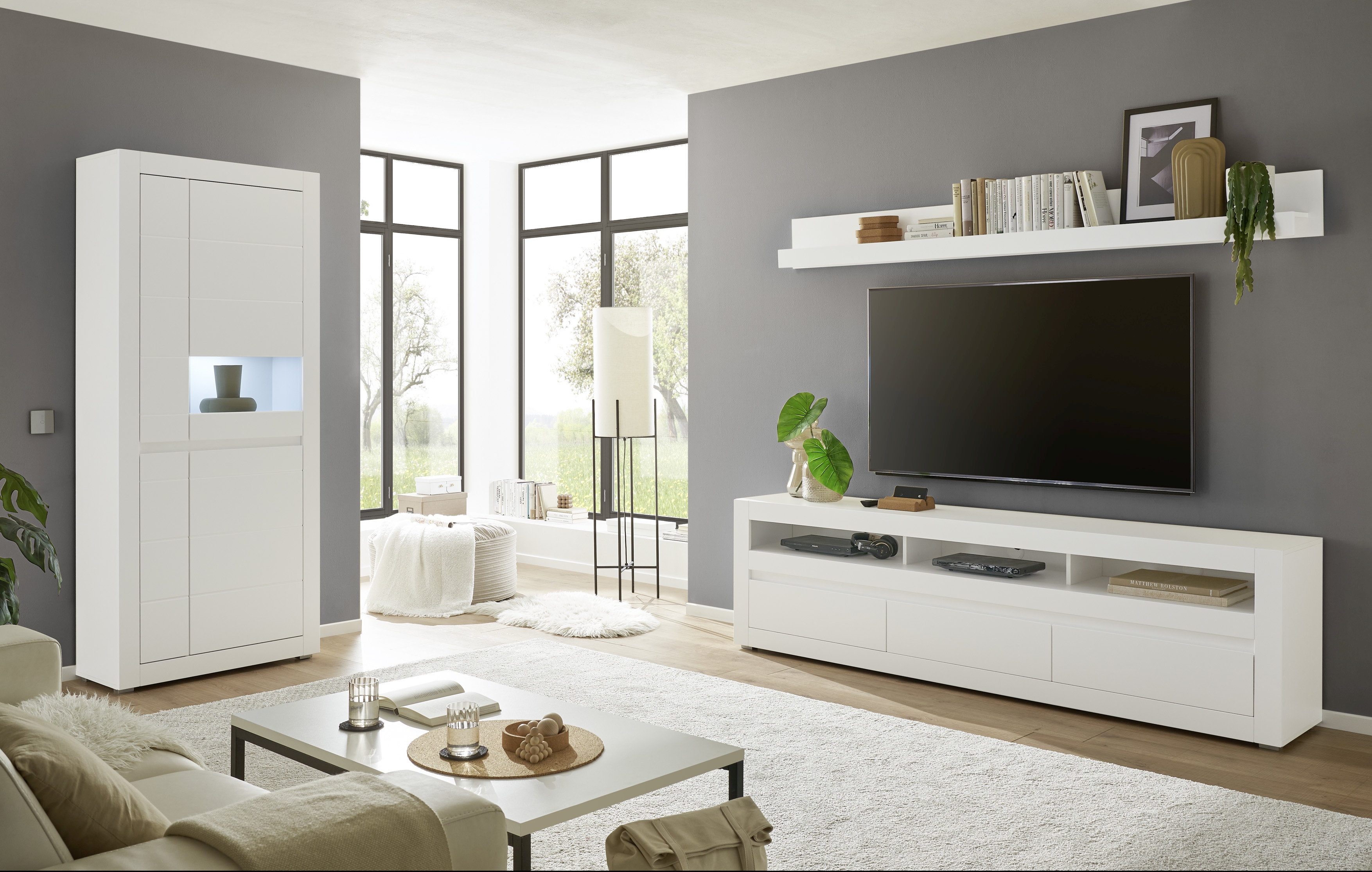 1 Lowboard mit 3 Gerätefächern und 3 Schubkästen