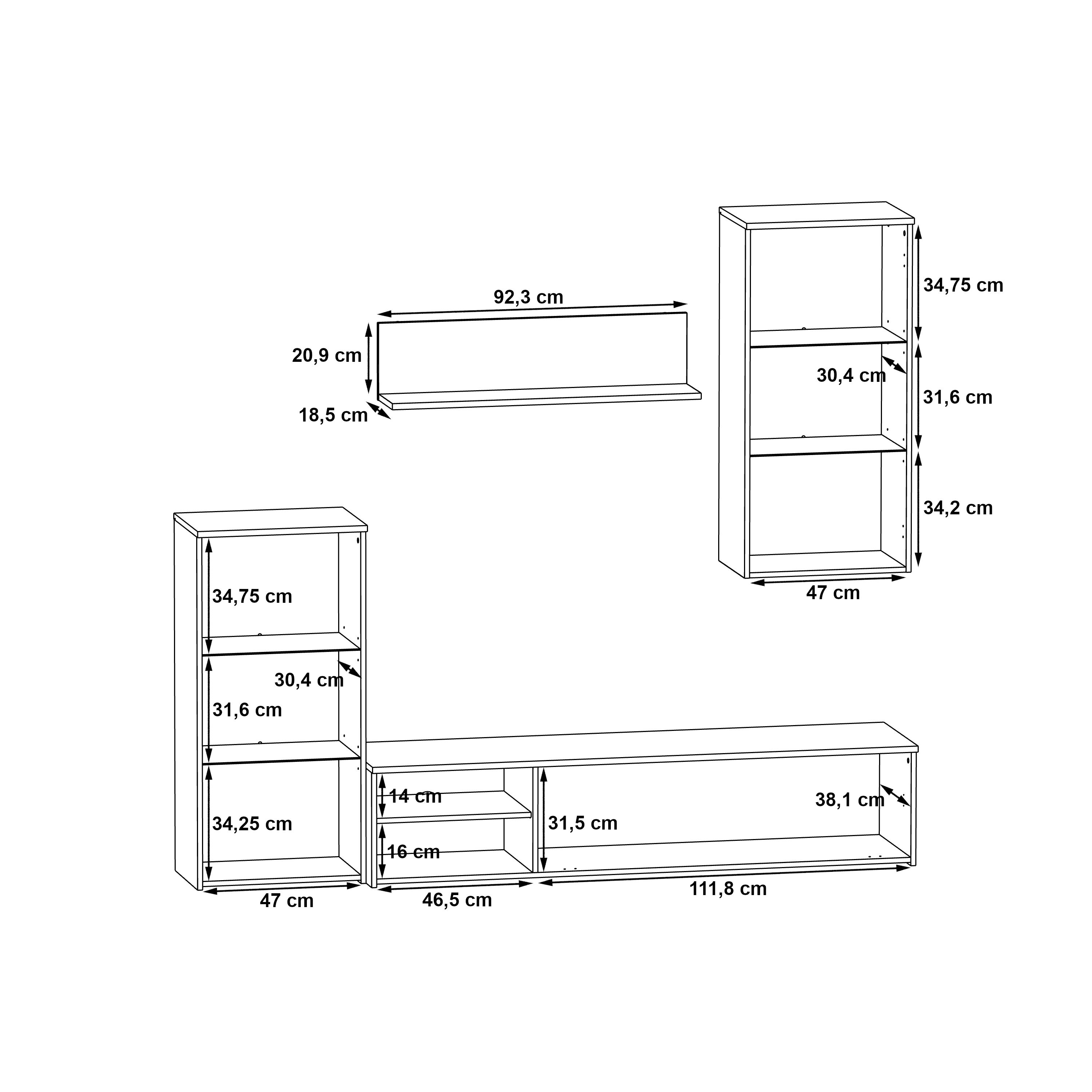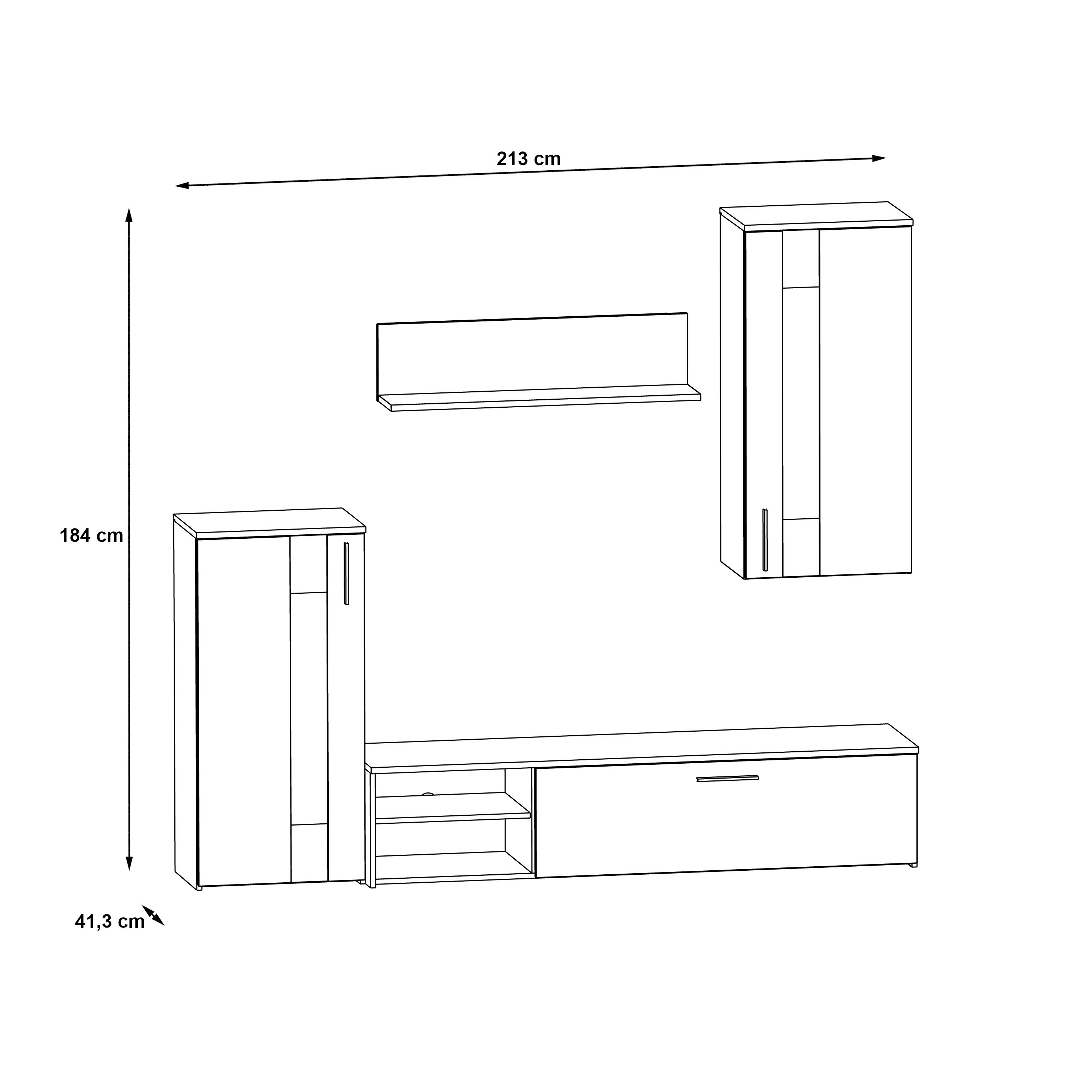 1 TV-Element mit 2 offenen Fächern, Kabeldurchlass und 1 Klappe