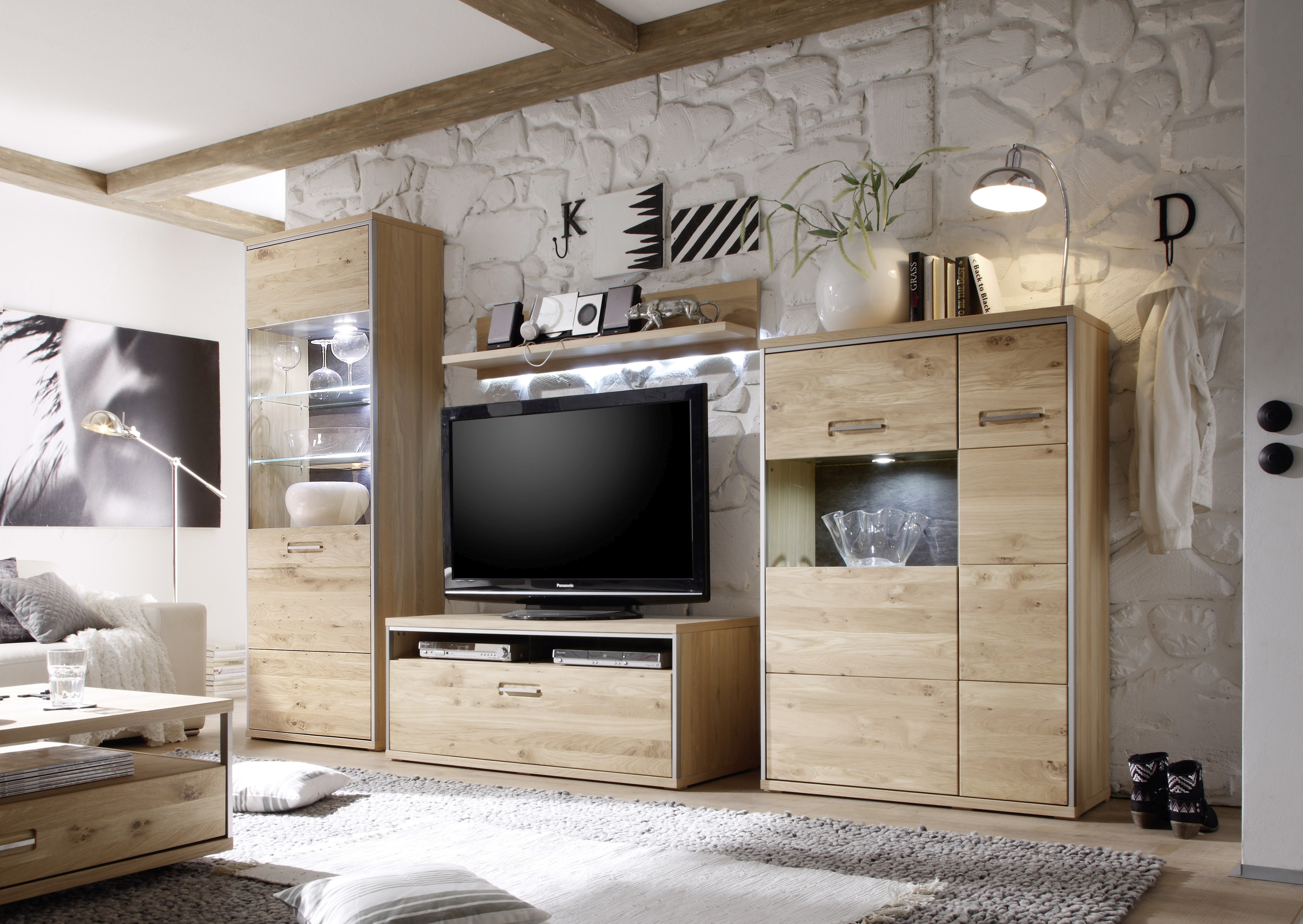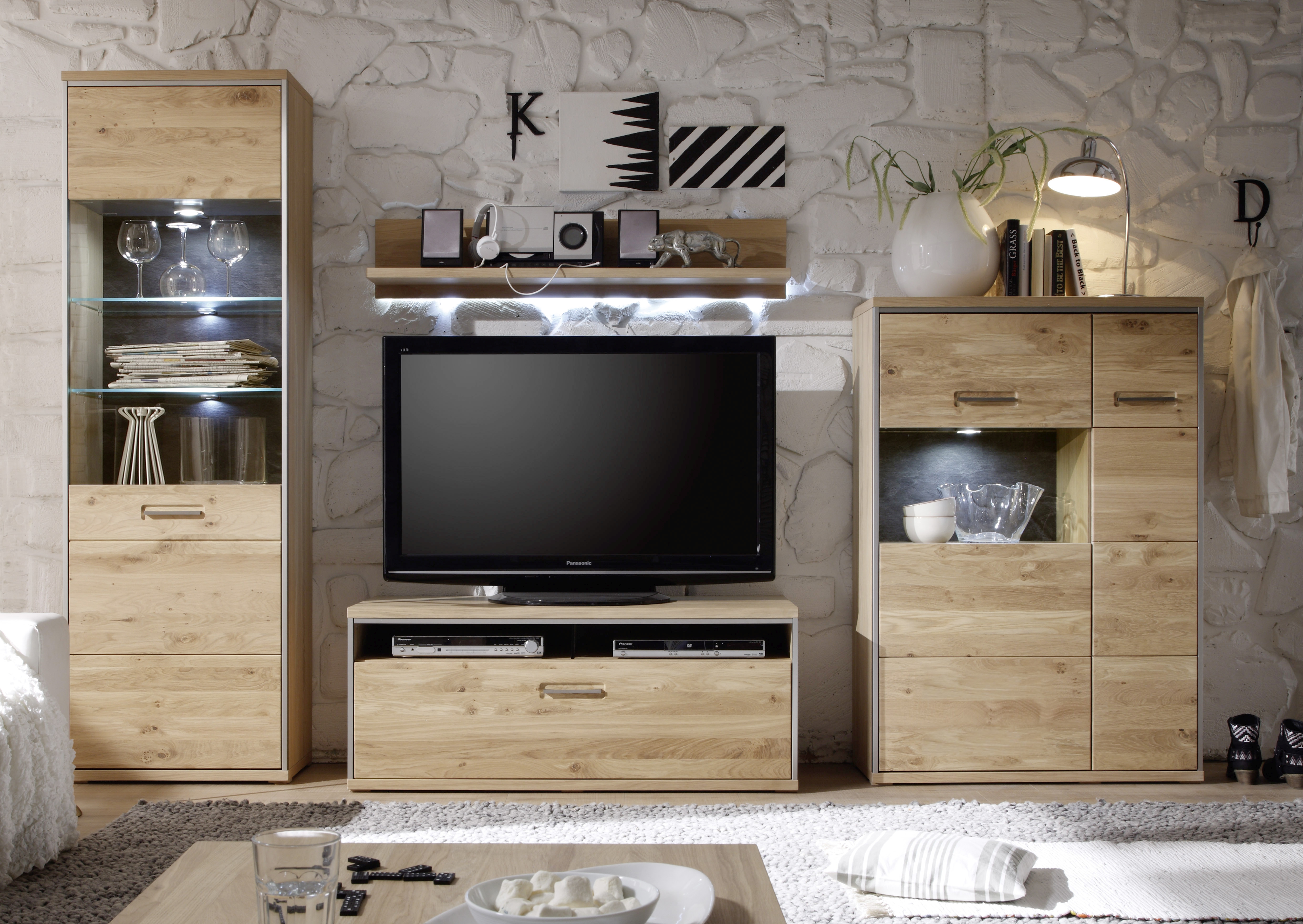Korpus: außen: Eiche bianco furniert; innen: Eiche bianco Holznachbildung