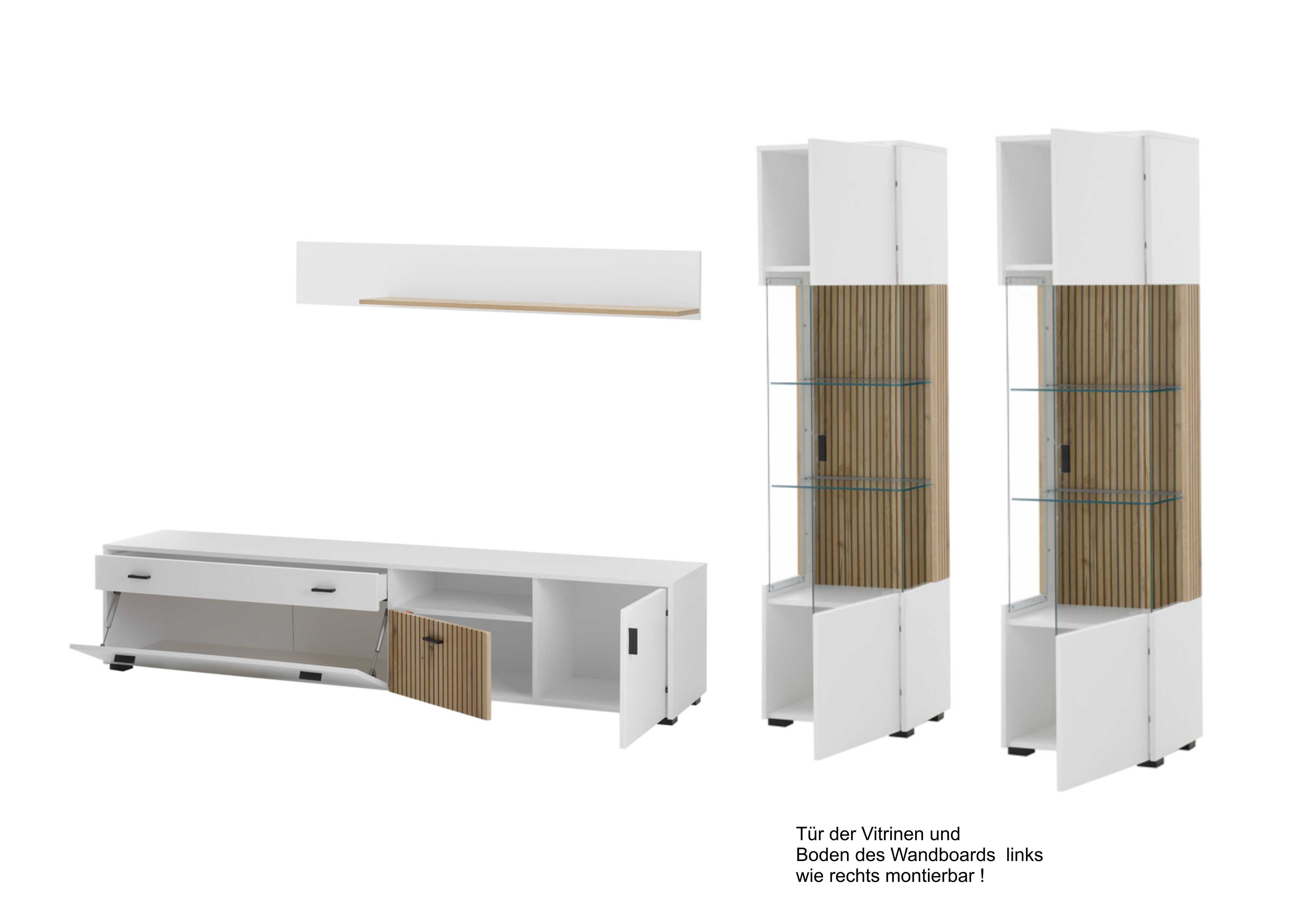 2 Vitrine mit jeweils 1 Tür, 2 Glasböden und 2 Konstruktionsböden (Türe re/li montierbar)