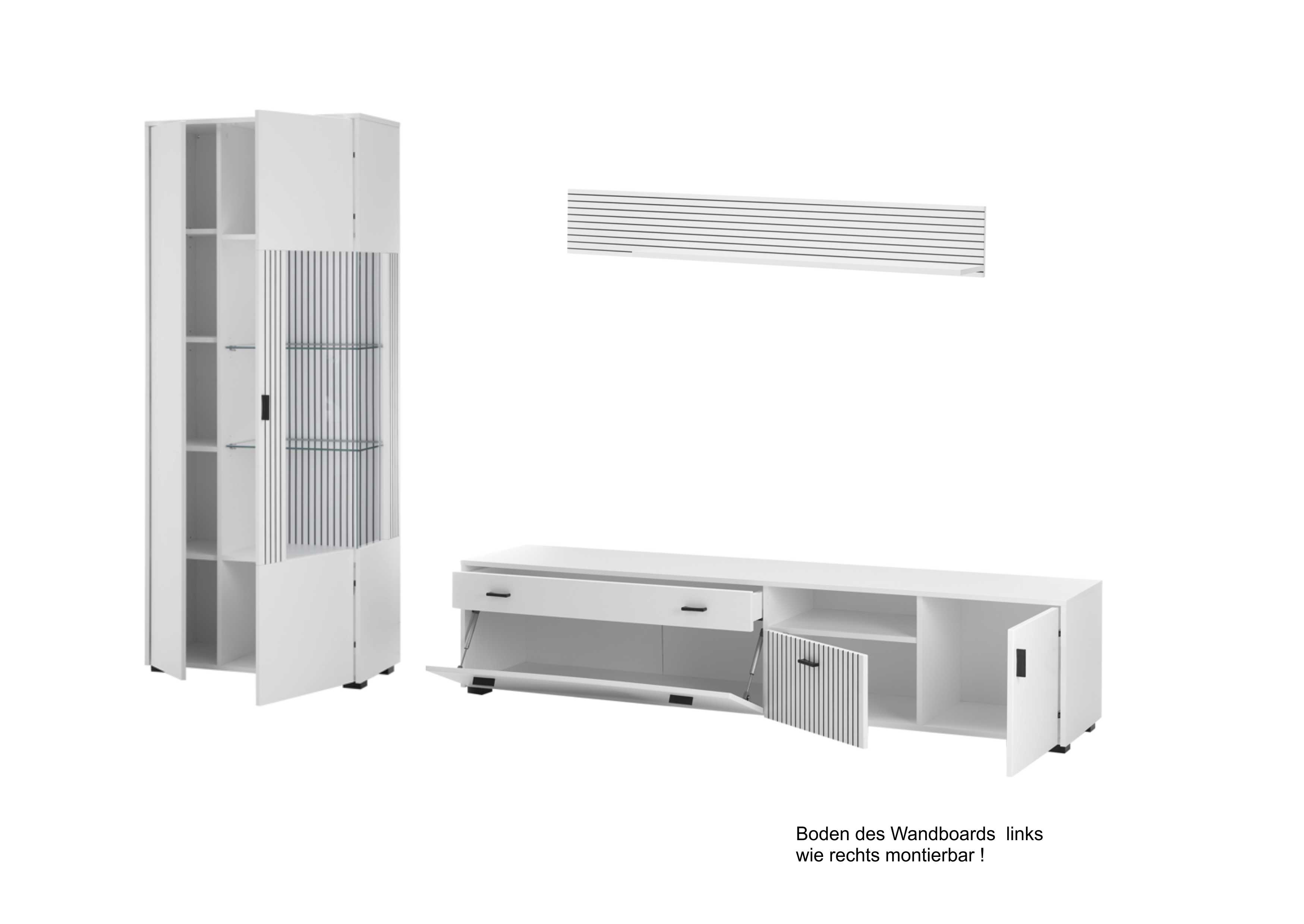 | Ausstattung Anbauwände: | Schublade(n), offene Fächer | ||
