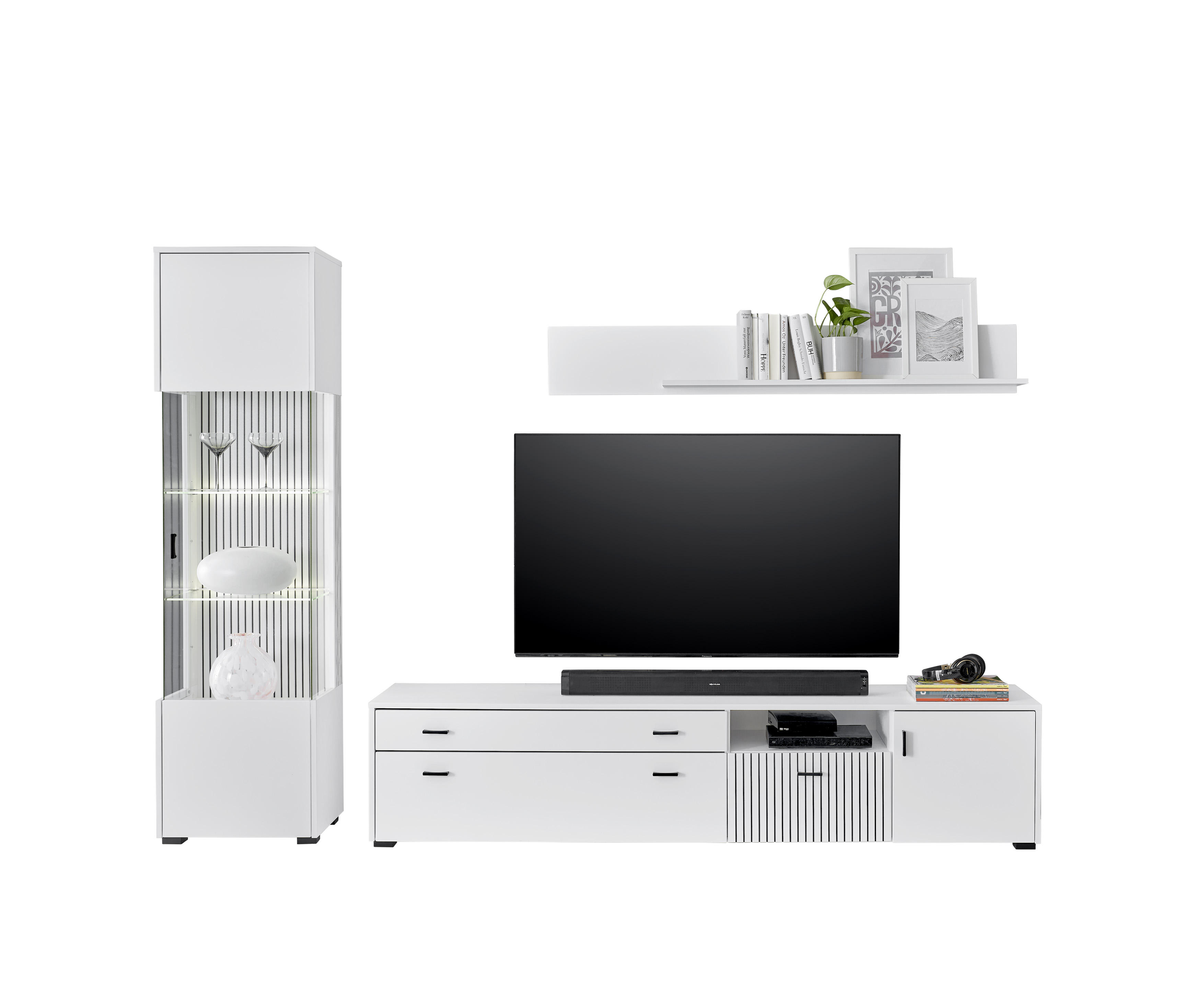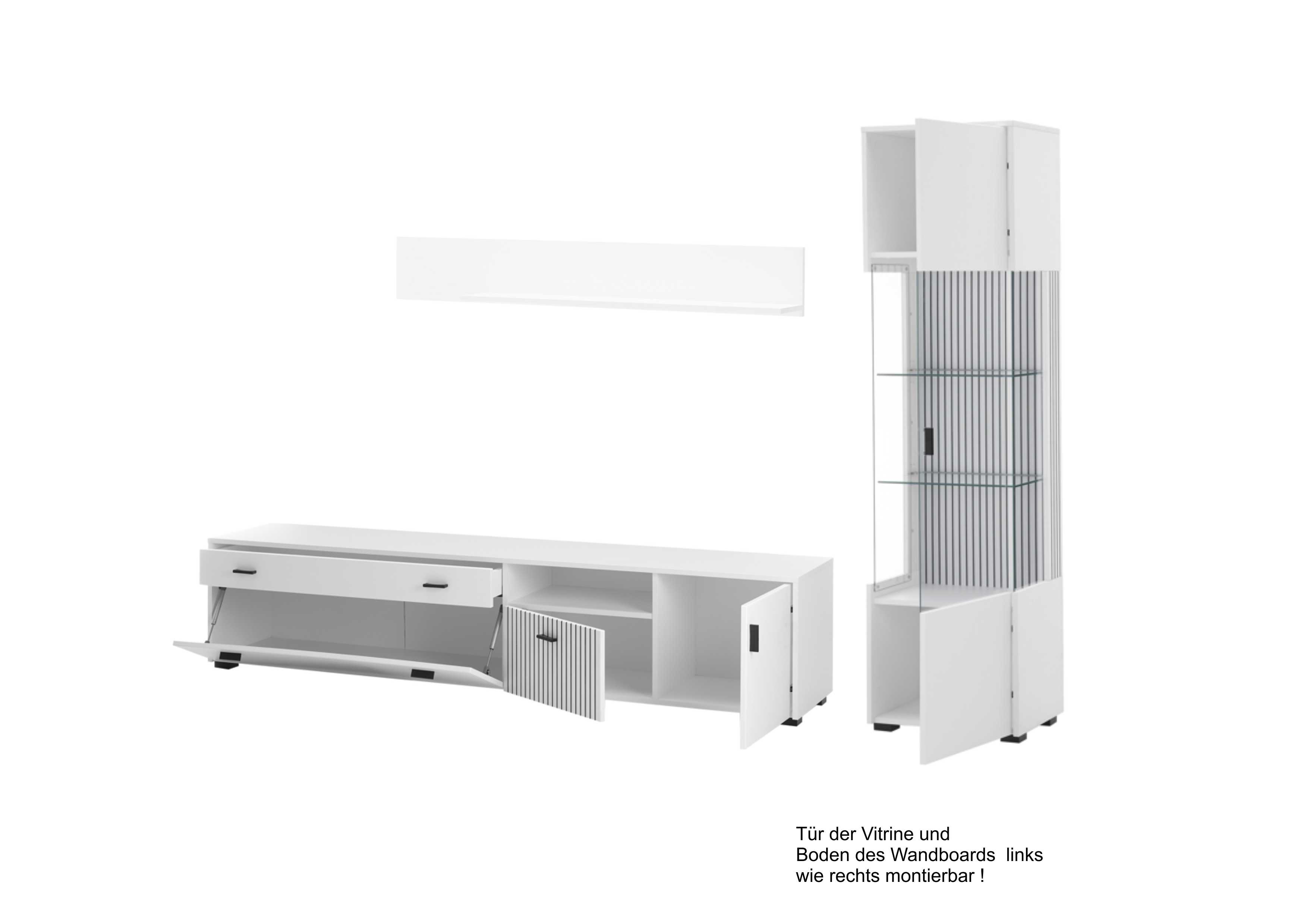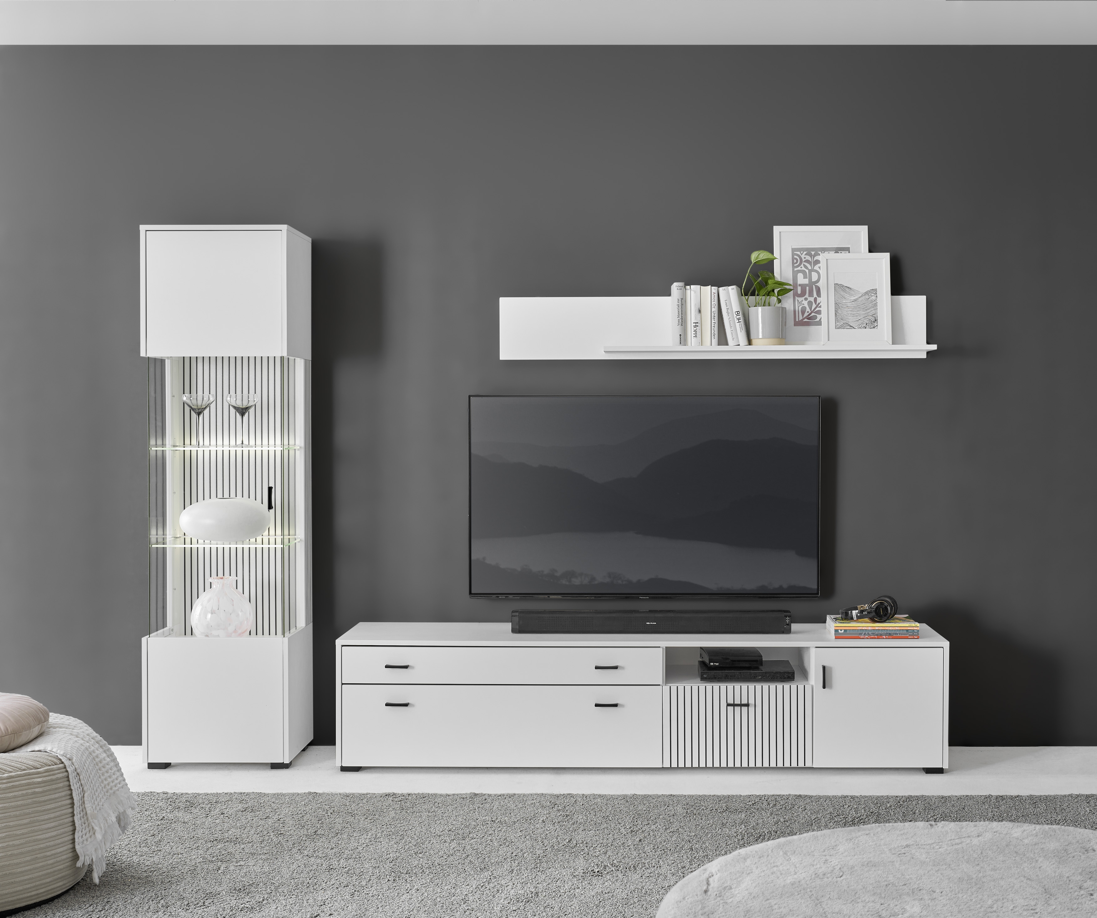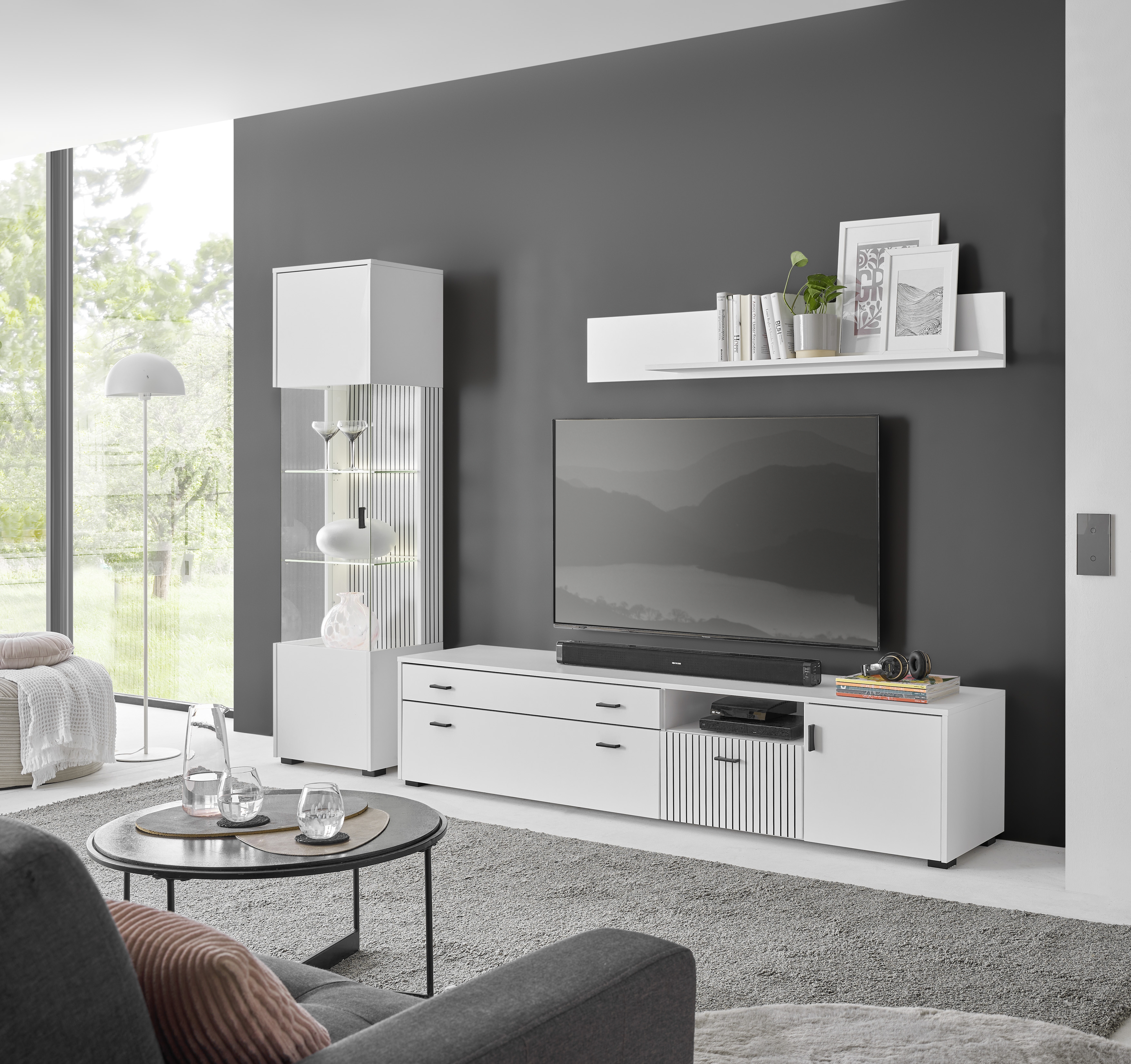 1 Lowboard mit 2 Türen, 1 Klappe, 1 Schubkasten und ein Gerätefach