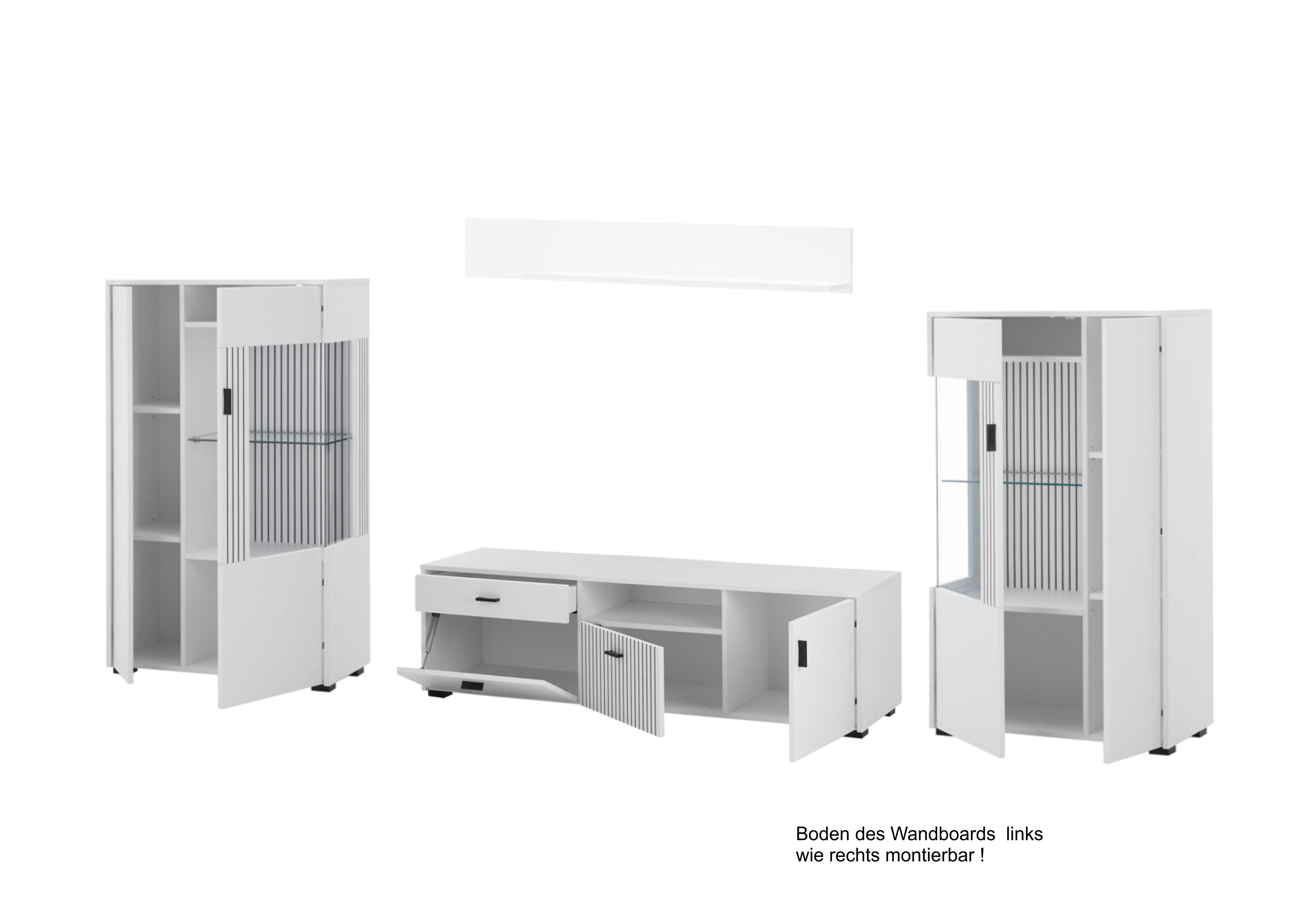 | Ausstattung Anbauwände: | Schublade(n), offene Fächer | ||