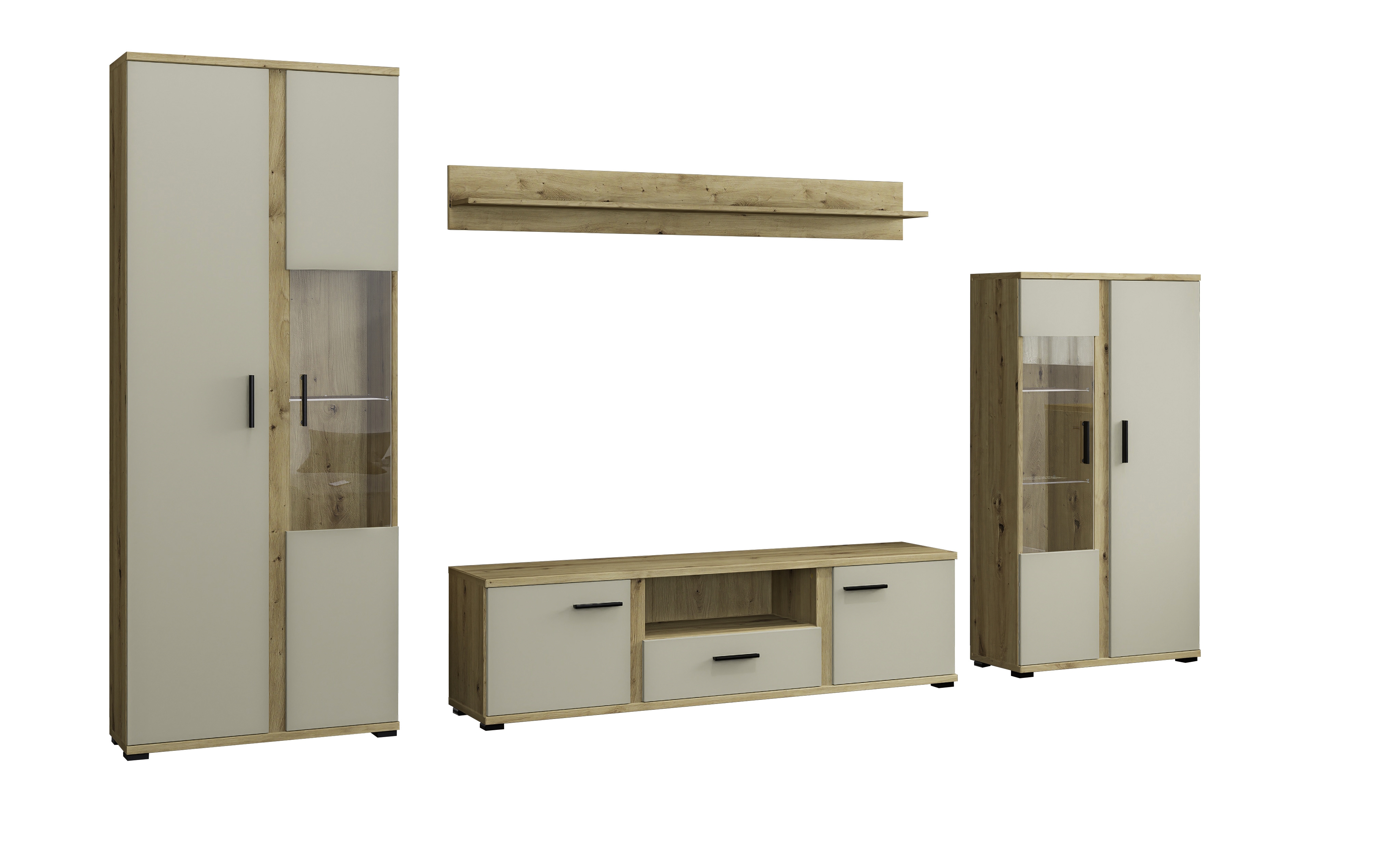 Front: Kaschmir mit Absetzungen in Artisan Eiche Holznachbildung, Spanplatte Melaminbeschichtung