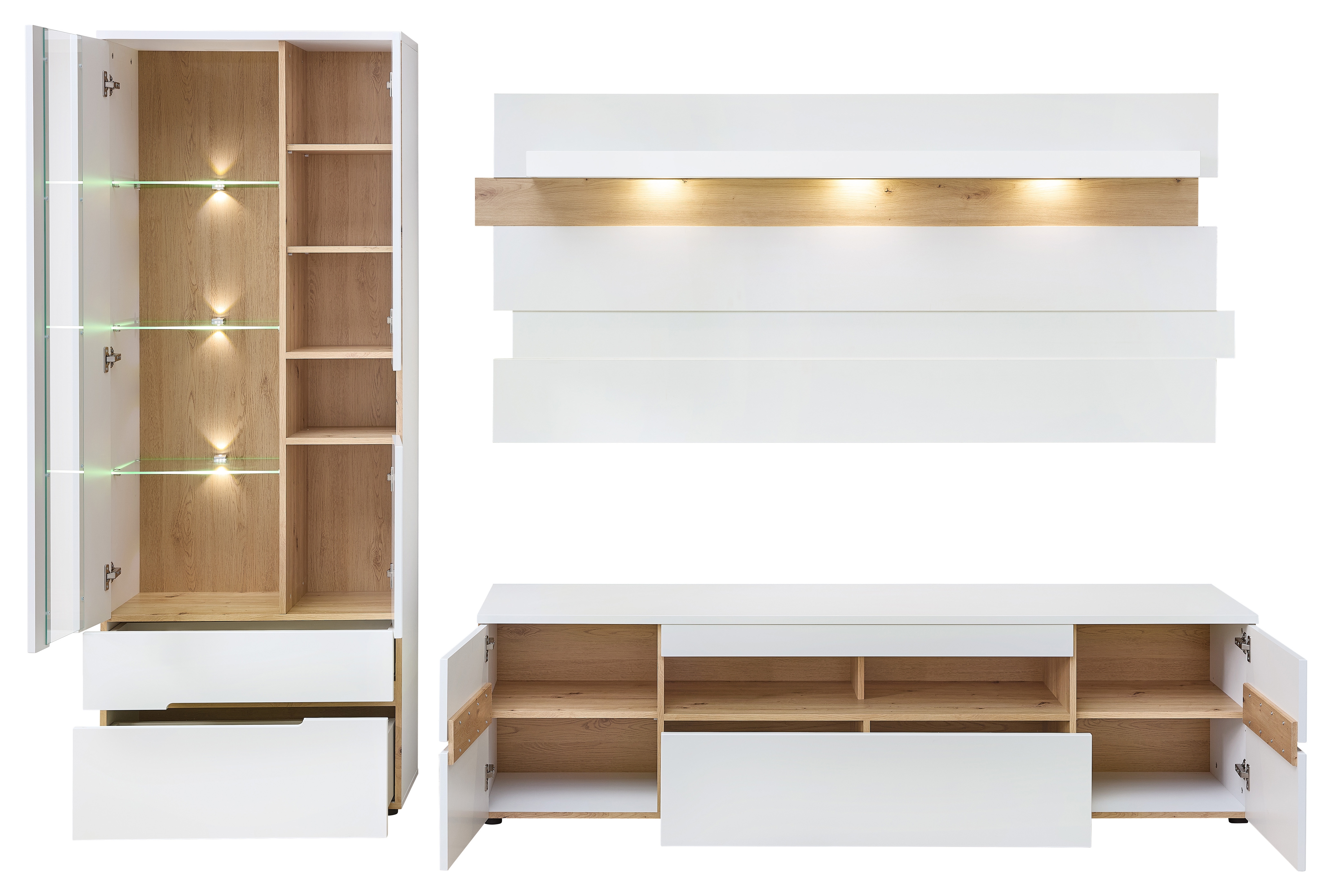 Korpus: Außen in Weiß, innen in Artisan Eiche Holznachbildung
