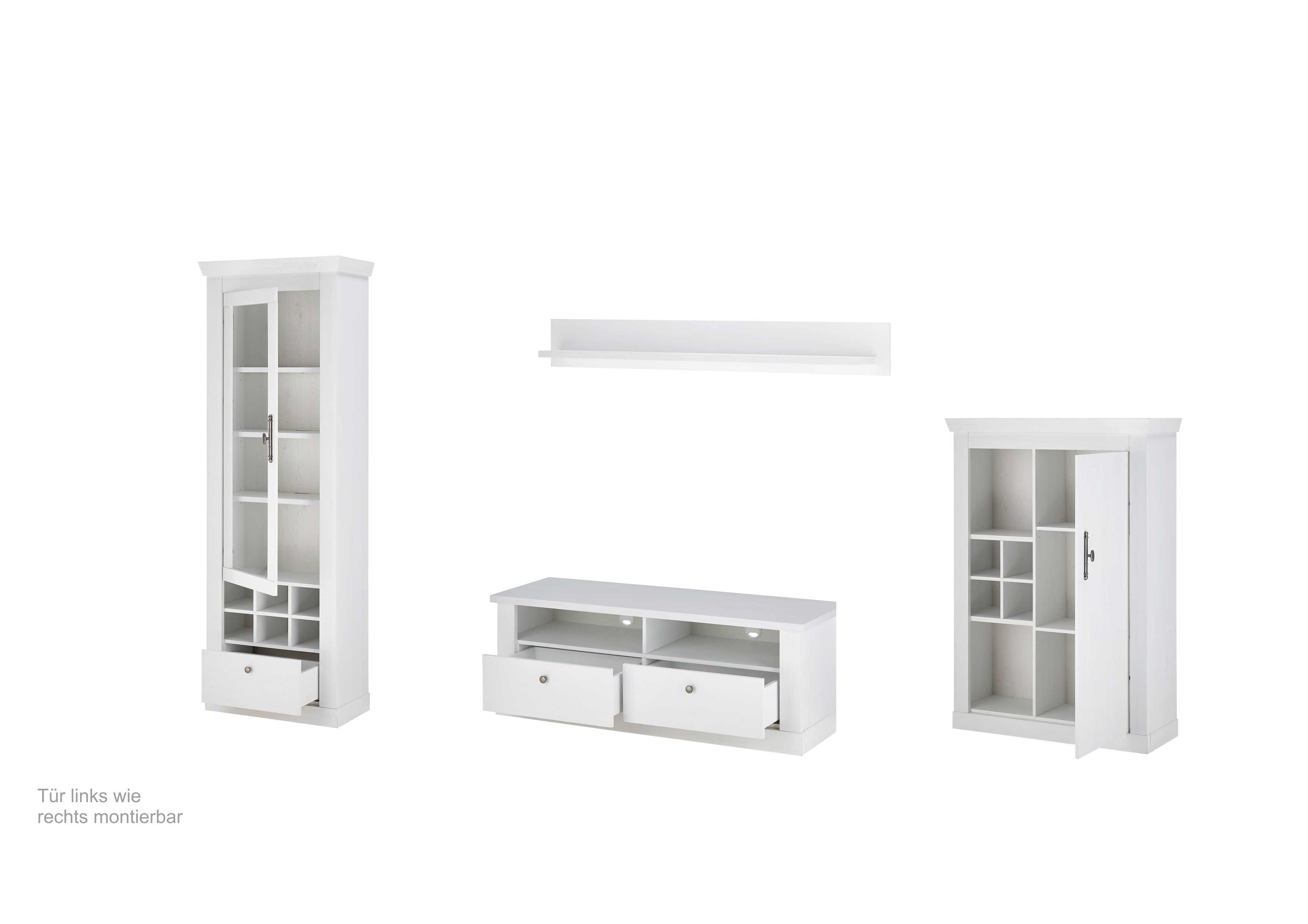 1 Kommode mit 1 Tür, 2 Böden, 2 offenen Fächern und 1 Flascheneinteilung mit 4 Fächern