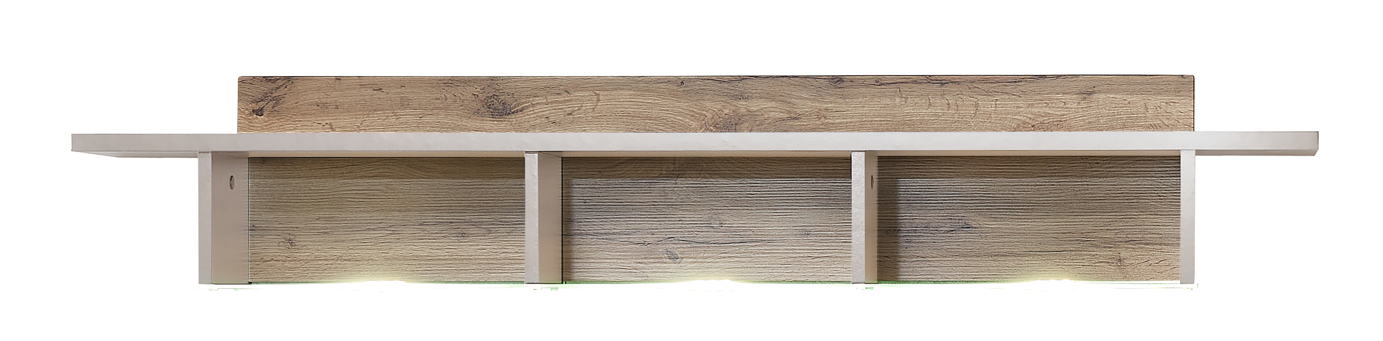 1 Wandboard mit 1 Holzboden, 1 Glasboden und 3 offenen Fächern