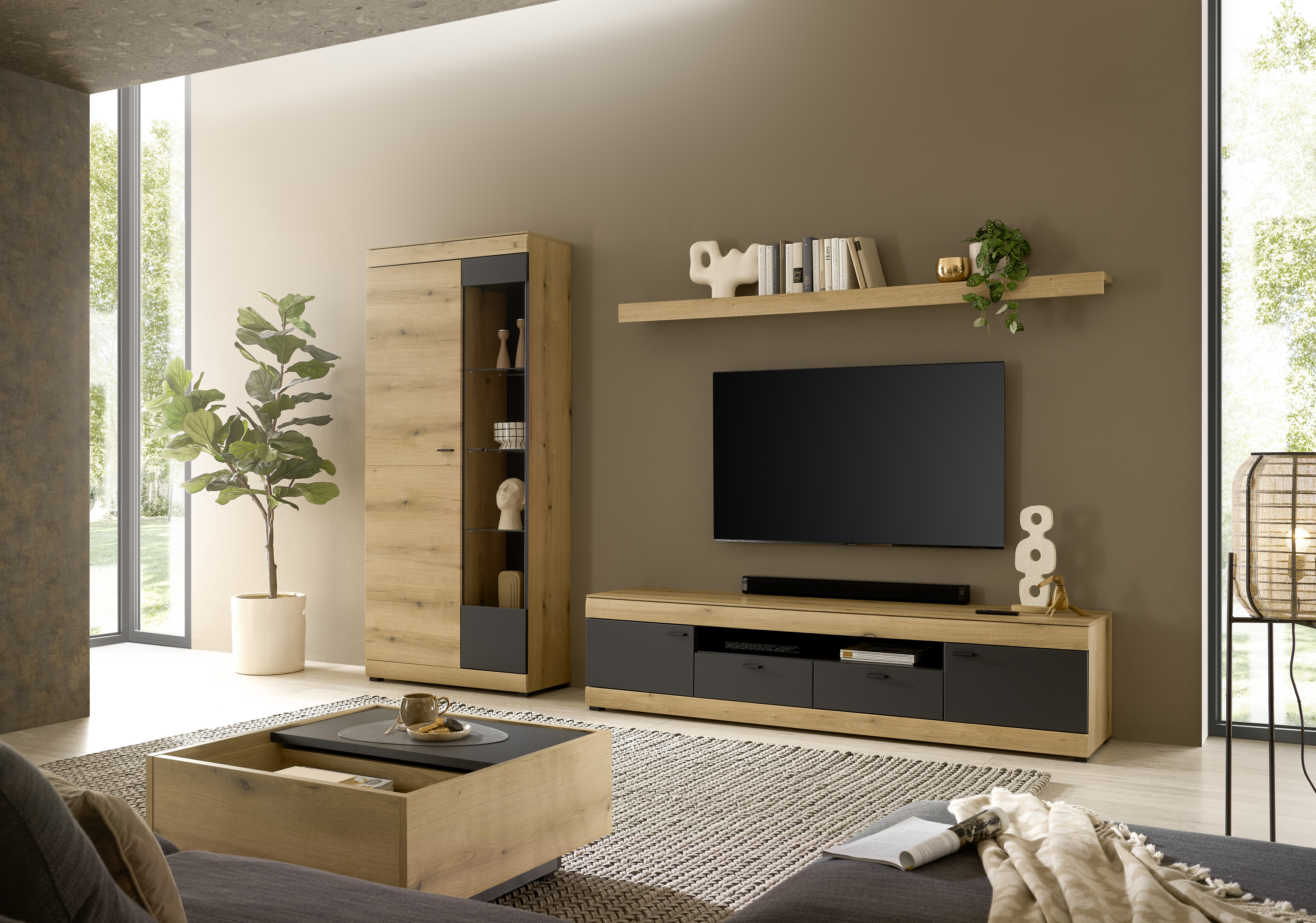 - Zeitloses Design mit Eiche-Fronten und graphitmatten Akzenten
