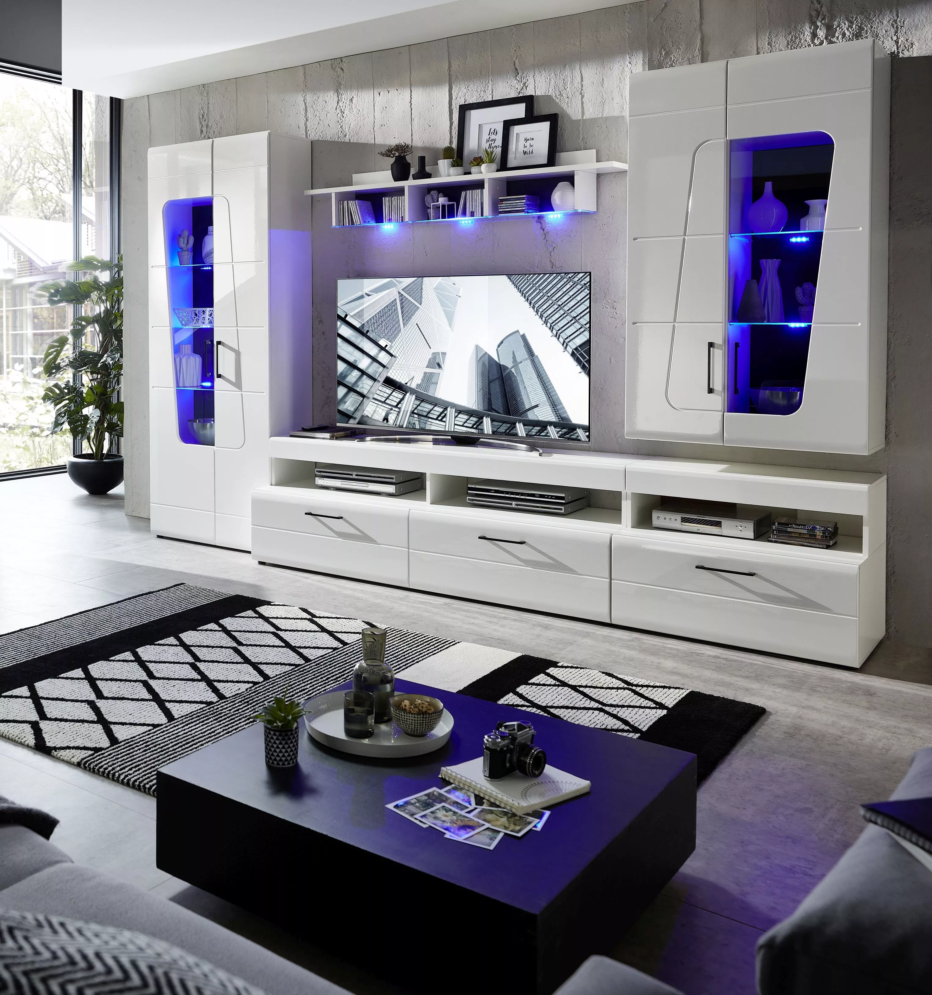 | Ausstattung Anbauwände: | Schublade(n), inkl. Beleuchtung, offene Fächer | ||