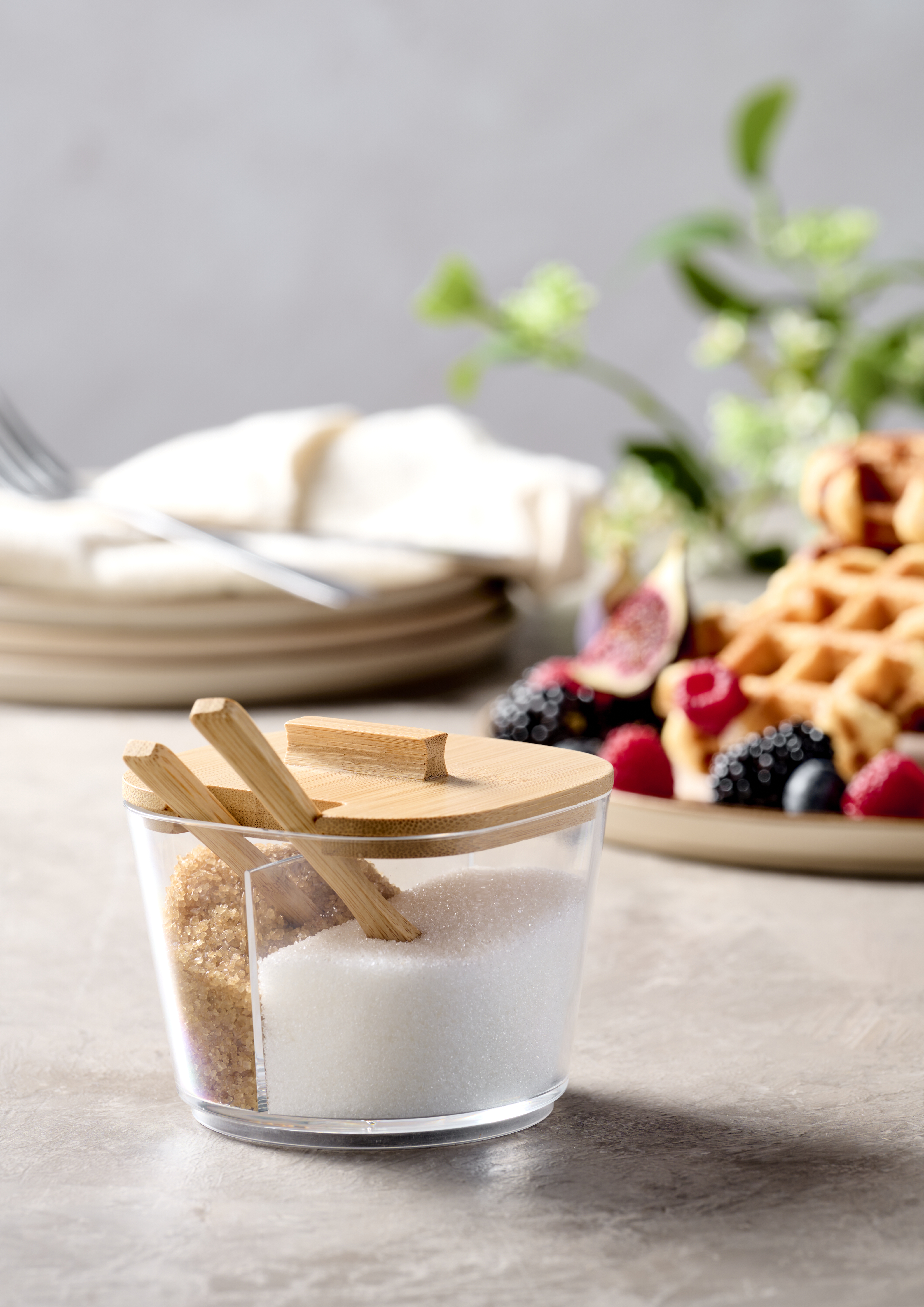 1 Zuckerdose mit Deckel inkl. 2 Holzlöffel
