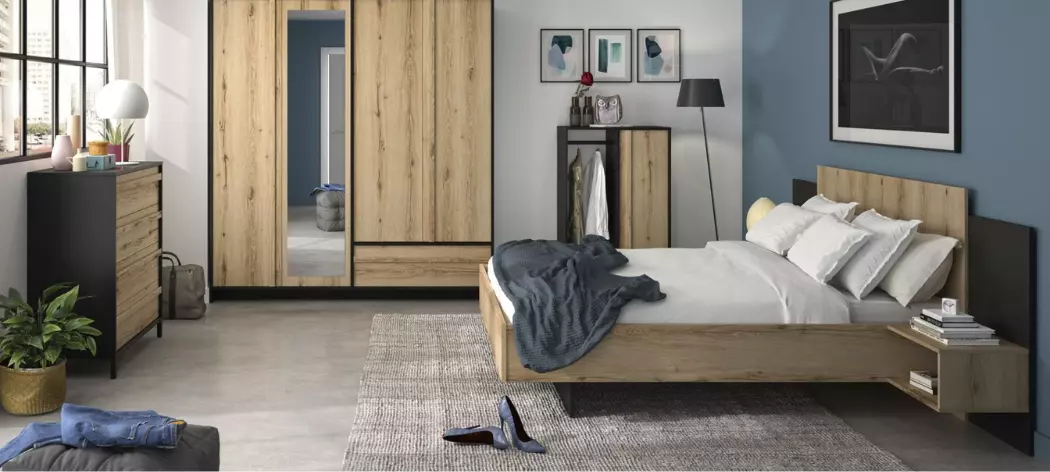Um wertvolle Fläche zu sparen oder den Platz in länglichen Schlafzimmern optimal zu nutzen, bieten schwebende Nachttische die ideale Lösung. Direkt an der Wand montiert, sehen sie nicht nur ansprechend aus, sondern bieten auch Raum für wichtige Utensilien wie Handy-Ladegeräte, eine Tasse Tee oder deine Nachtlektüre. Achten Sie darauf, dass Sie die Nachttische in gleicher Höhe mit der Matratze oder höher anbringen, um bequem darauf zugreifen zu können.