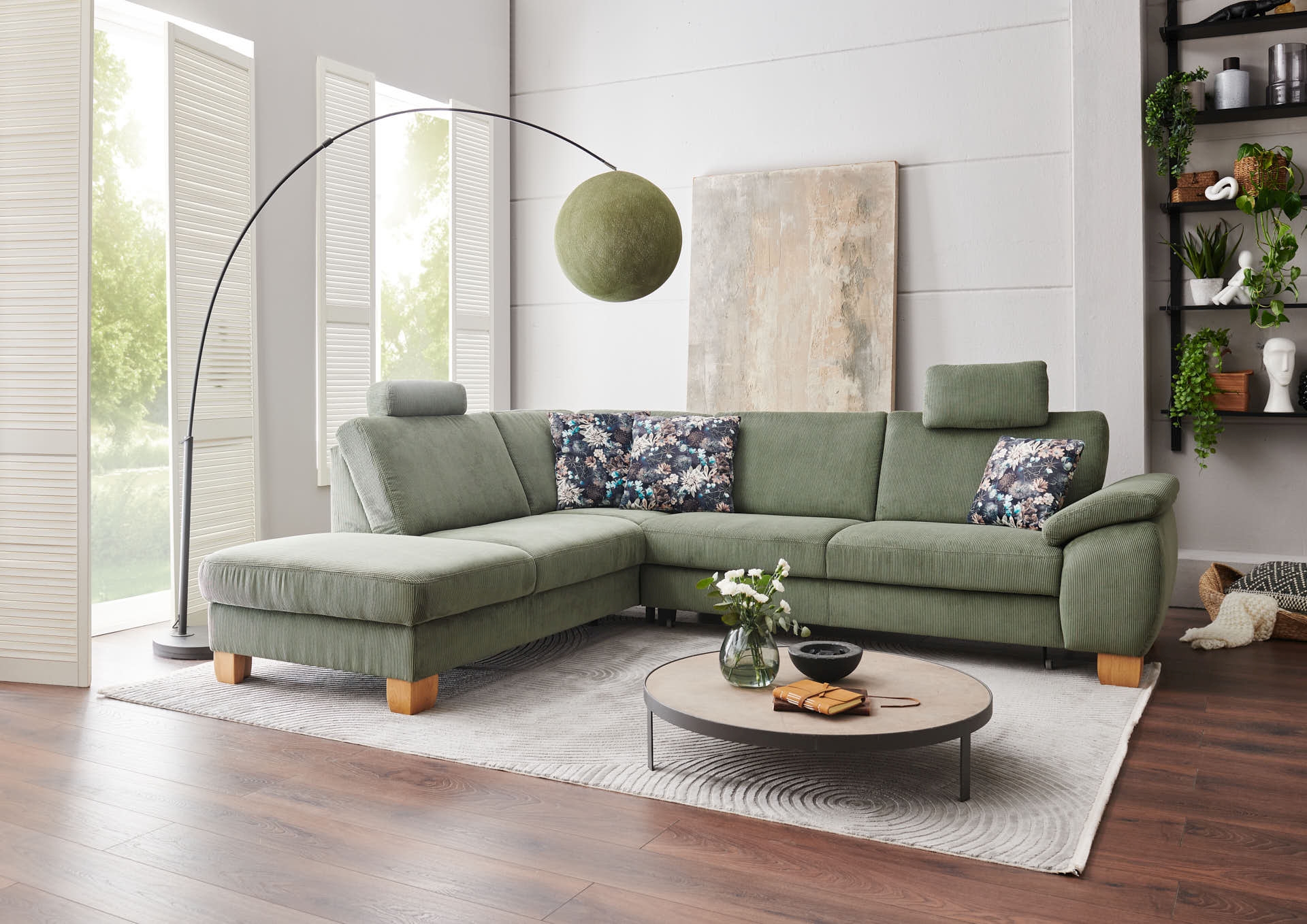 Traditionell werden Sofas an den Wänden platziert, aber das ist nicht zwingend notwendig. Zum Glück sind die Zeiten vorbei, in denen beim Rückenbezug gespart wurde. Eine Möglichkeit wäre eine zentral platzierte Sofagruppe mit einem Couchtisch, um dem Raum ein einladendes Zentrum zu geben. Ecksofas müssen auch nicht unbedingt nur in einer Nische stehen; sie können durchaus als Raumteiler fungieren und den Raum neu strukturieren. Auch in einem kleinen Wohnzimmer müssen Sie nicht auf ein großes Sofa verzichten! Sie können zum Beispiel ein Ecksofa als gemütliche Kuschelecke inszenieren. Wenn Sie besorgt sind, dass der Raum optisch überladen wirkt, entscheiden Sie sich für ein Modell mit hohen Füßen und einer schlanken Silhouette.