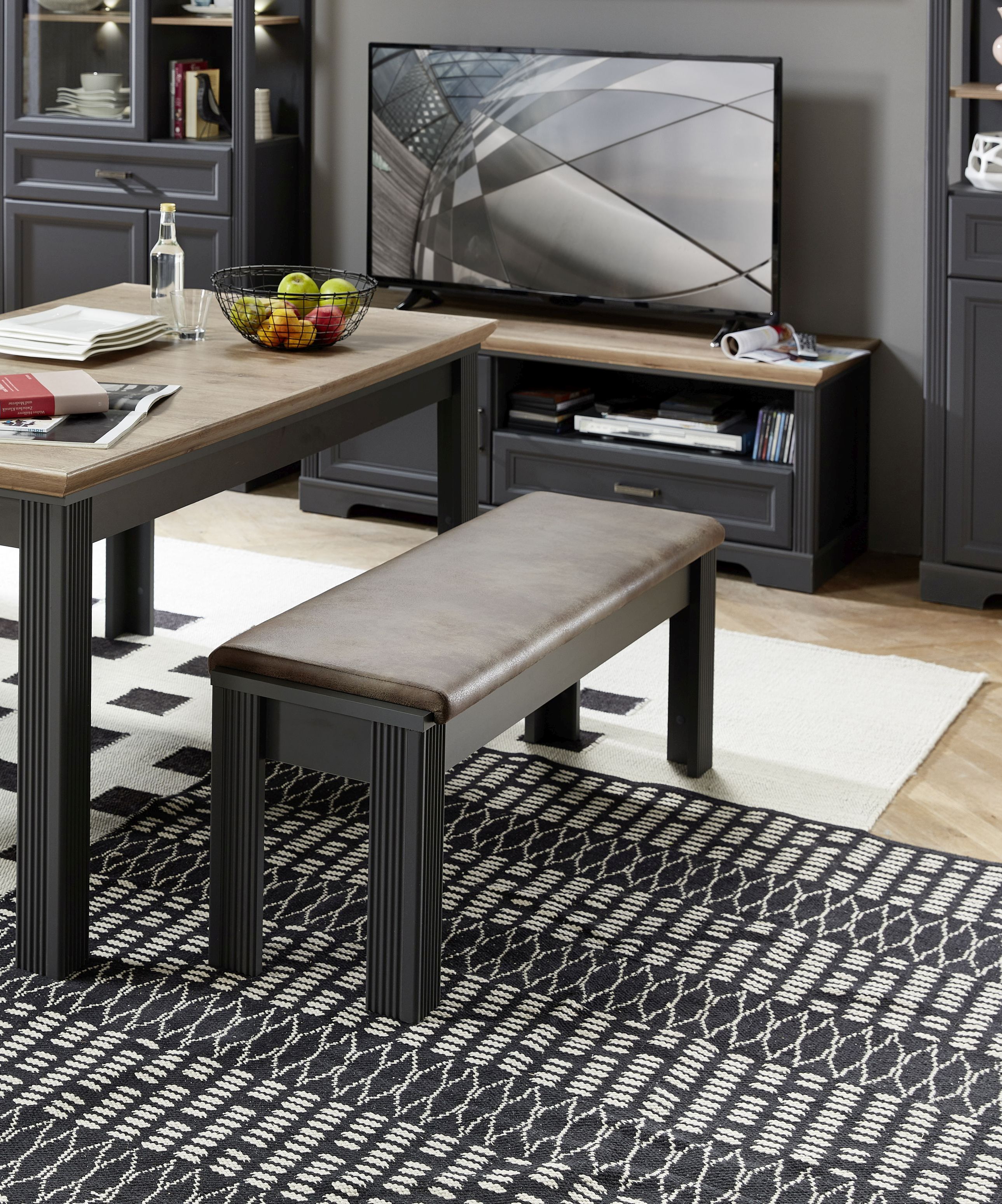 Natur pur ist beim Skandinavisch/Landhausstil angesagt. Dominierende Naturmaterialien wie Holz und Textilien stehen im Mittelpunkt der Betrachtung. Eine passende Sitzbank für diesen Wohnstil ist zum Beispiel eine Sitzbank aus massivem Eichenholz mit Polsterung in hellen Farben. Auch eine rustikale Bank aus Sheesham oder Teakholz mit geschnitzten Ornamenten und natürlicher Maserung passt perfekt zum Landhausstil. Kombiniert mit weiteren Holzmöbeln wie einem Esstisch aus massivem Holz, wird ein harmonisches Gesamtbild im Esszimmer erreicht.