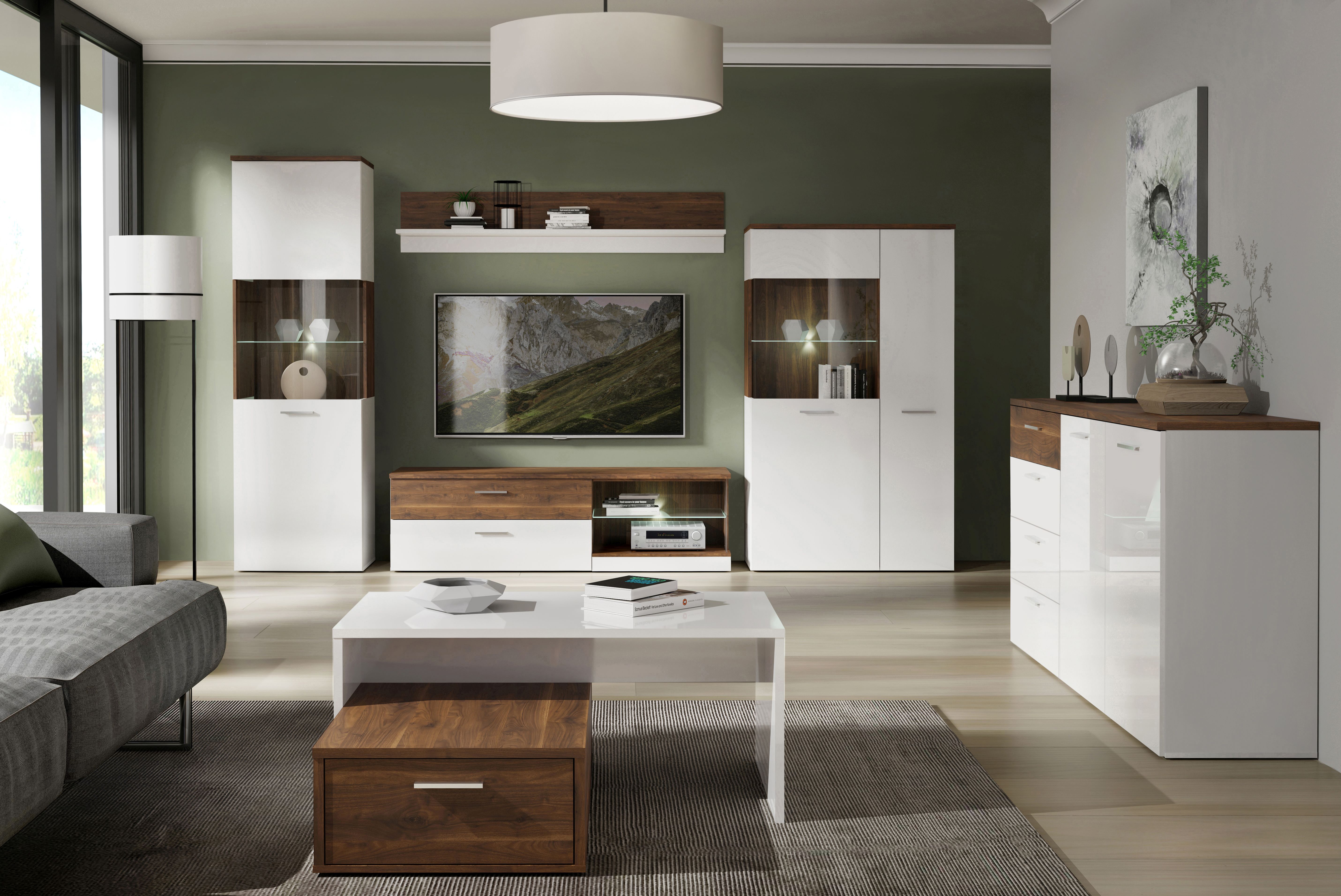 Wohnwände mit Sideboard Vitrine, LED Beleuchtung und TV Paneel